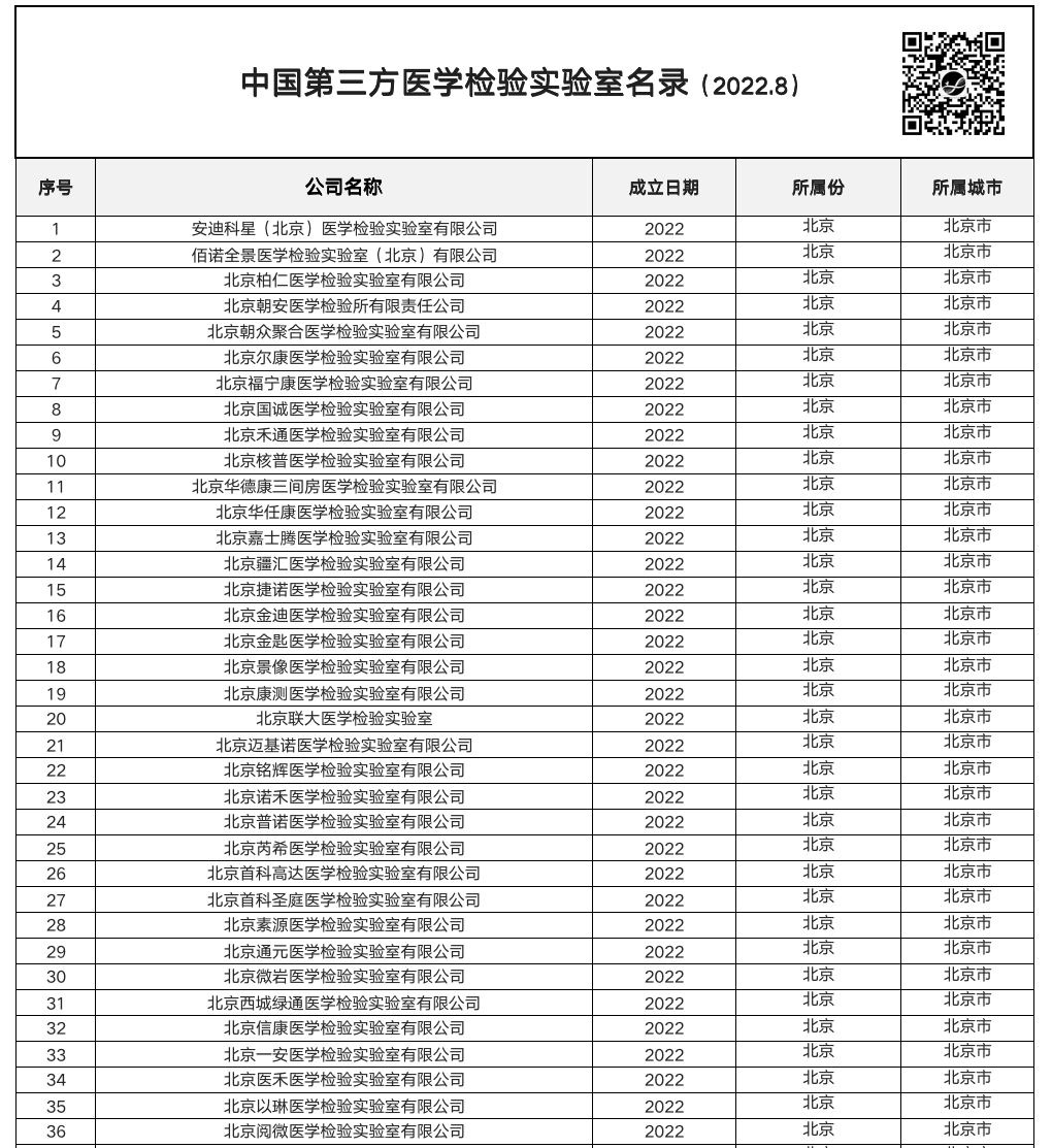 最新 | 中国第三方医学检验实验室名录发布