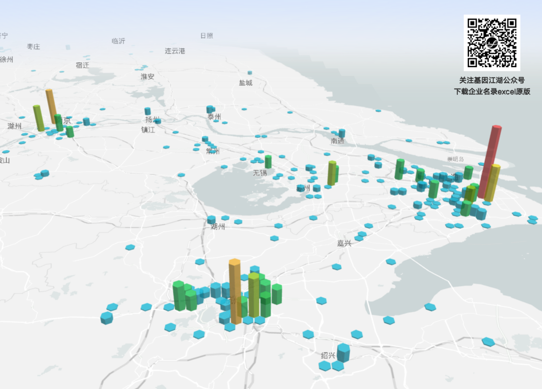 从三维地图上看,我国第三方医学检验实验室主要聚焦在热点生物医疗产业园区,区域位置比较集中。其中以北京(亦庄生物医药园、中关村生命科学园、大兴生物医药基地)、上海(张江生物医药产业园)、南京(生物医药谷)、苏州(生物医药产业园)、广州(生物岛、高新技术产业开发区)、深圳高新技术产业开发区等较为聚集。