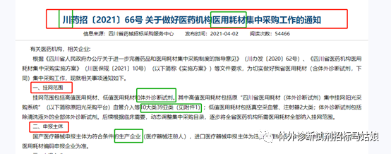 首先要记住这个秘诀,“5W1H”,即When Where Why Who What How,意思是何时何地何人做什么,为什么,怎么做。下面马姑娘来说一说基本步骤,请听好了。 看公告应该怎么看,这六看最为关键: 一、 看公告发布日期、来源网站(When、Where) 二、(1):看标题,关键字(耗材、体外诊断试剂、IVD)(Who) (2):看目录,采购品种范围(十七大类、十三大类、十大类耗材、低值耗材、体外诊断试剂、IVD)(Who) (3):看申报对象(生产企业、配送企业、经营企业)及采购人(公立和民营医疗机构、零售药店、医保定点医疗机构)(Who) 三、 看申报时间,截止时间(When) 四、看申报方式(线上or准备纸质资料),具体要求(做什么,完成什么任务)(What) 五、看公告发布依据(一般在文章开头提到,根据某某文件要求…)(Why) 六、 看操作手册(如何操作)(How) 举例: 何时:发布时间:2021-04-02 何地:信息来源:四川省药械招标采购服务中心 第二步:看标题,关键字、目录、申报对象(Who) 标题关键字:四川、医用耗材、集中采购 采购目录:高值耗材、低值耗材、体外诊断试剂 申报对象:生产企业、国内总代 其他目录形式: