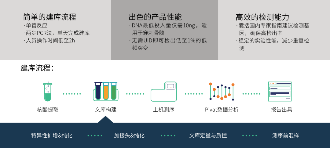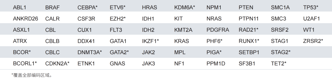 引言 血液肿瘤存在许多致癌驱动因素和亚型,具有病程变化快,短时间内扩散恶化的特性。每年,约有128万人被诊断出血癌,占全球所有新增癌症病例的7%。血液肿瘤中,根据肿瘤的分型,综合继往病史、细胞形态、免疫表型、遗传学特征及临床、治疗和预后特点,分为三大类:髓系、淋系和组织细胞/树突细胞肿瘤。 髓系肿瘤是一组高度异质性的造血系统恶性疾病,主要包括急性髓细胞性白血病(Acute myeloid leukemia,AML)以及骨髓增生异常综合征(myelodysplastic syndrome,MDS)、骨髓增殖性肿瘤(myeloproliferative neoplasm,MPN)和骨髓增生异常/骨髓增殖性肿瘤(myelodysplastic/myeloproliferative neoplasm,MS/MPN)等,多发生于中老年人,具有向急性白血病转化风险,危害着人们的生命健康。随着我国人口向老龄化发展,此类疾病发病率有逐年增加趋势。近年来随着二代测序技术在临床的推广应用,大量MPN和MDS/MPN疾病相关基因被发现,为疾病诊断提供了新的克隆性分子标志,从而开启了一个分子诊断(分型诊断)的新时代。真固生物推出的ONCO/Reveal™ Myeloid 58 Gene Panel可以为髓系肿瘤的治疗前及预后环节的应用研究提供全面、灵敏的检测结果,为疾病的诊断分型、预后评估、用药指导及遗传筛查提供重要依据。 Myeloid 58 Gene Panel产品介绍 ONCO/Reveal™ Myeloid 58 Gene Panel基于SLIMamp®专利技术,检测58个髓系肿瘤相关基因,其中包含18个基因的CDS区域和40个基因的热点突变区域。主要用于髓系肿瘤(包括AML、MDS、MPN、MDS/MPN等)的疾病诊断分型、预后评估、用药指导和遗传筛查。 表1. ONCO/Reveal™ Myeloid 58 Gene Panel基因列表 表2.Panel 基本性能参数 *ITD(内部串联重复)突变是FLT3最常见的一类突变最初是在1996年由Nakao等人发现的,是指在基因近膜结构域插入了一段重复序列,通常发生在近膜区的精氨酸残基595附近,位于基因的14/15号外显子上,插入的位点和序列多种多样,长度一般3-400bp不等,总是以三倍的倍数出现,保留了转录本的阅读框(ORF)。插入的重复序列导至FLT3在无配体结合的情况下发生二聚体化并持续自我磷酸化,增强激活酪氨酸激酶活性,使得下游信号通路(RAS/MAPK 、PI3K/AKT等)持续激活,导至细胞增殖失调,促进AML疾病的复发等。 图1. FLT3基因的内部串联重复突变示意图 图2. 实验流程 产品性能验证结果 2019年Pillar公司就该试剂盒的检测性能进行验证,并将相关实验结果和数据发布在当年全球分子病理学大会(AMP Global)的Poster上。 图3. 不同DNA投入量下的文库产量 使用3种gDNA分别进行检测,样本输入量1 ~ 80 ng均能稳定地建库。 图4. 不同DNA投入量下的均一性 2.5 ~ 40 ng样本时,均一度均大于95%。 图5. 不同DNA投入量下的比对率及中靶率 不同DNA投入量比对率始终接近100%,>5ng样本时,即可获得理想的中靶率。 图6. 高GC含量基因区域覆盖度 具有高GC含量的CEBPA基因全CDS均可被Panel所覆盖。 图7. 准确性-SNV、Indel、ITD验证结果 对标准品各SNV、Deletion、Insertion和ITD均有较好的检出效率。 表3. 准确性-FLT3-ITD性能验证 可有效检测标准品和3种细胞系中的FLT3-ITD,测得的最长ITD片段为126bp。 Poster链接:https://pillarbiosci.com/wp-content/uploads/2021/04/Poster-2019-AMP-_-Wang-Myeloid-assay-development.pdf 髓系肿瘤基因检测的临床意义 急性髓细胞白血病(AML) AML是一种罕见的侵袭性血液及骨髓肿瘤,它阻止白细胞成熟,导至“原始细胞”累积,使正常血细胞的空间减少。全世界所有成人白血病患者约有25%归因于AML,在我国,每10万人中就有1-2个人发生,主要是在成年人且病情急重,预后凶险。骨髓细胞形态学、免疫学、细胞遗传学和分子学检测是AML诊断和治疗的基础。AML具有高异质性,基因检测有助于AML的预后分层、微小残留病(MRD)的监测和整体治疗策略的制定。 2006年,FLT3-ITD作为AML患者临床医师推荐使用的检测指标写入NCCN指南,在2010版NCCN指南中明确指出c-KIT、FLT3-ITD、NPM和CEBPA作为AML患者检测指标,2018版NCCN指南中又新增了IDH1、IDH2、P53等检测指标,随着研究的深入,基因突变所带来的临床意义,在不断的被发现和验证,目前已知的AML中最常见的基因突变就包括 FLT3(37%)、NPM1(29%)、DNMT3A(23%)、CEBPA(14%)和 NRAS(10%)等,以下列举了几个常见AML相关基因检测的意义: NPM1:据报道,有28-35%的AML患者伴有NPM1(编码一种核仁多功能蛋白)基因突变,NPM1突变已被证明与NK-AML有关,在NK-AML中发生的频率为48-53%。与野生型的NK-AML患者相比,NPM1突变的NK-AML具有更高的完全缓解(CR)率和无病生存期(EFS)和总生存期(OS),预后与具有良好细胞遗传学的患者相似(如CBF AML)。NPM1突变型AML 的分子组成、病理和临床特征独特,因此,2017年世界卫生组织(WHO)在髓系肿瘤分类将NMP1突变型AML划分为独特的类型。 FLT3:在AML患者中,已发现两种激活FLT3(编码一种受体酪氨酸激酶)突变的类型,包括内部串联重复(ITD,约存在与30%的AML患者中)和酪氨酸激酶域(TKD,约存在与10%的AML患者中)点突变。ITD突变的患者预后不良,完全缓解率和无病生存率会降低;TKD突变预后存在争议,最常见位点是D835。 CEBPA:CEBPA(编码一种转录因子)在粒细胞分化过程中起重要作用。据报道,有7%-11%的AML患者(或NK-AML患者的13%-15%)发生了CEBPA突变,并与预后良好相关,改善了患者的缓解期和总生存期(类似于CBF易位的患者)。但CEBPA突变带来的良好的预后只针对CEBPA双突变的患者而非单突变的患者。在一项研究中报道,CEBPA基因双突变、单突变和野生型AML患者8年总生存