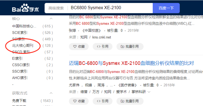 最后这里就是统计结果,这些数据就略过了,我们看一下这篇论文的流程。 方法首先是测定批内精密度、批间精密度、正确度、携带污染率还有线性范围,结果是都合格,结论是迈瑞6800是目前理想的血细胞分析仪。 从这里我们也可以看出,作为论文阅读者,对结果和结论并不会太重视,因为论文既然发表了,结论无非就是这样——仪器还不错。就像看电影一样,你看了十分钟,就猜到了后面所有剧情,那么看下去的欲望还大吗?还记得这篇论文的题目吗——《迈瑞6800的临床应用性能评价》。我们去学术网站上查一下,相关的论文很多,举几个例子,是不是题目很相似?各个期刊、各个年份都有。 我们随便拿出一篇来分析一下。方法是测这样几组数据数据,结果和结论和刚才那一篇基本一样。方法也差不多,就是把刚才那一篇的正确度换成了模式对比。 那能不能把两篇论文的方法合成一篇论文呢,可不可以啊?它岂止可以,它可以的令人发指,我们为了说明一个论点,多加一个论据,自然没有问题。当然了,也不是越多越好,要适可而止,如果你一下子放了三千个论据,相应的就有三千组数据,整本期刊都不够发你一篇文章的。 综合看下来,做一篇论文还是不难的,快则一周慢则一个月数据就全了。但是好做不一定好发表,也是因为操作简单,投稿的人也就很多。因此就需要让论文尽量复杂起来,常用的方法引入新的变量,举个例子,咱们前面列出的论文都是一台血细胞分析仪,我们可以再引入一种血细胞分析仪。 如果我们搜索论文题目仅仅含有关键字“BC6800”,就有184条搜索结果,如果我们我们在题目的关键字中,再加入另外一种血细胞分析仪“SysmexXE-2100”,搜索结果只有6篇,做的人就少多了。常见的血细胞分析仪有很多种,比如迈瑞、美康、贝克曼等等,我们可以自由选择。这里就是举个例子,当然也可以引入其他变量,比如体液模式、网织红、研究参数里的原幼细胞等。大家可以自由联想。 我这里最多算抛砖引玉,检验大家庭牛人很多,可能看不上这种小文章。有兴趣的小伙伴或者科研小白可以闲暇时间摸索摸索,试试看,特别是对升职称有需要的小伙伴。当然了,如果要升职称可不要随便找个杂志就去投稿。 很多医院和高校会有一个本单位开出的期刊目录,投稿别超了这个范围,要是单位不承认,也就白投了。我之前浏览了几个,大部分期刊目录包含于北大核心期刊,如果需要参考,点一下这里就好了。 参考文献 [1] 彭致平,黄明兰,赵连娣,柯云云.迈瑞BC6800血细胞分析仪临床应用性能评价[J].国际检验医学杂志,2016, 37(8): 1136-1137. [2] 王玉霞,李伟,巴杨杨.迈瑞BC-6800血细胞分析仪临床应用性能验证[J].吉林医学,2019, 40(2): 3. |
