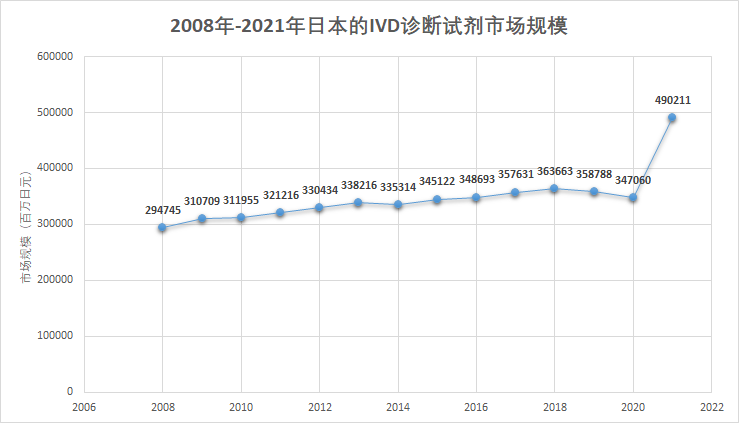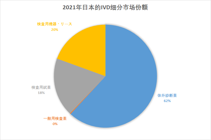 今天我们聊一聊日本的IVD市场,据世界银行报道,日本的2021年GDP为4.9万亿美元,约占全球的5%,世界排名第三,略低于我国广东省、江苏省、山东省的总和,总人口数量约为1.26亿人,与广东省总人口数相当。据报道,日本的医疗器械市场约占全球的5.6%,排名第四,IVD人均消费是中国的6倍。那么日本的IVD市场到底如何呢? 据日本临床检验协会(臨床検査薬等の売上金額)的最新数据,日本在2021年的IVD市场规模约为57亿美元(792,359百万日元)相较于2020年增长31%。 而日本的IVD细分市场包括IVD诊断试剂、OTC试剂、检测试剂(试剂耗材)、仪器设备。其2021年的细分市场如下: IVD诊断试剂约占体外诊断市场的62%。 仪器设备约占体外诊断市场的20%。 检测试剂(试剂耗材)约占体外诊断市场的18%。 OTC试剂占体外诊断市场的<1%。 声明:1、凡本网注明“来源:小桔灯网”的所有作品,均为本网合法拥有版权或有权使用的作品,转载需联系授权。2、凡本网注明“来源:XXX(非小桔灯网)”的作品,均转载自其它媒体,转载目的在于传递更多信息,并不代表本网赞同其观点和对其真实性负责。其版权归原作者所有,如有侵权请联系删除。 3、所有再转载者需自行获得原作者授权并注明来源。 最新评论相关分类图文热点 最新文章