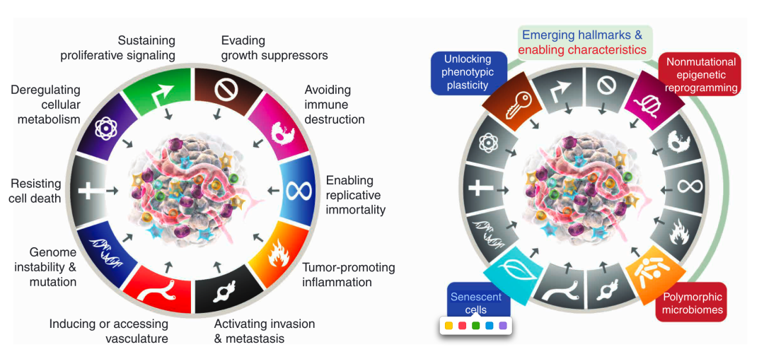 驱动基因除了关注不同癌种特异性强的基因如肺癌 EGFR,也会关注不限癌种应用的(Tissue-Agnostic)基因如RET。 生物标志物,我们会按照从微观到宏观的尺度(基因突变到基因集再到基因组特征)展开,其中基因组特征包括当下最受关注的ctDNA、TMB、ITH、HRD和新抗原等等。除学习临床应用,还需要会了解它们从提出到走向临床实践再到写入指南的历程。目前最常见的各类靶向TKI药物、免疫治疗以及ADC等药物,也会按照生物标志物类似的方法推进。关注临床以外,我们也应该关注肿瘤相关的各种关键基础生物学问题。对于这些内容,将依据最新版的Cancer Hallmarks 来逐一学习交流。