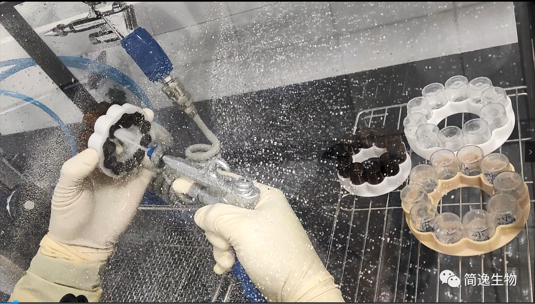 西林瓶包材,是冻干试剂研发和实验理想的包材:稳定并且可以排除过程中的干扰因素。但瓶子生产和运输过程会产生对产品质量和研发结果影响的风险:粉尘和玻璃碎屑/运输过程的污染物等。但如果在市场上配置一套保障系统,成本投入非常巨大。而使用西林瓶卡托后,更低成本即可获得无酶、无菌的包材保障系统。 西林瓶卡托的应用,给试剂开发和生产带来巨大的便捷性和质量的提升。 并且只要简单配置、低廉投入,即可实现去除污染物、消除RAN酶、达到无菌的更高要求。 简单、低投入即可搭建一套无菌、无酶的清洗系统: 西林瓶卡托、超声波清洗机、手套箱及清洗喷枪、纯净水压力罐、无菌压缩空气过滤器、高温灭菌消毒柜。 步骤: ①对西林瓶卡托胶塞进行超声清洗: ②清洗后放入喷淋手套箱: ③先用洁净空气吹干残留水; ④再用高压纯净水冲洗,2到3遍; ⑤再用洁净压缩空气吹干: ⑥转移到高温消毒柜,建议使用120℃以上,胶塞可用臭氧消毒。 一个半小时后,温度冷却下来后,即可使用。 低投入、配置简单便可获得高效的保障系统:对于冻干试剂产品,质量得到巨大提升;对于试剂开发,更好地排除干扰因素,有效缩短研发周期。 装瓶、灌装、加塞、进出料操作简单,不会倒瓶 瓶间间隙配合,自由落下,绝对与板层接触 无遮挡,方便观察制品状态 品温探头放置,不会挂到制品 耐酸碱、耐腐蚀,耐受121℃蒸汽灭菌 微球冻干,更方便与高效 快速低温进料不冻手,不倒瓶 西林瓶卡托的应用,给您实验或生产带来巨大的便捷性。并且只要简单配置、低廉投入,即可实现去除污染物、消除RAN酶、达到无菌的更高要求。 更多技术分享请关注简逸生物公众号 |