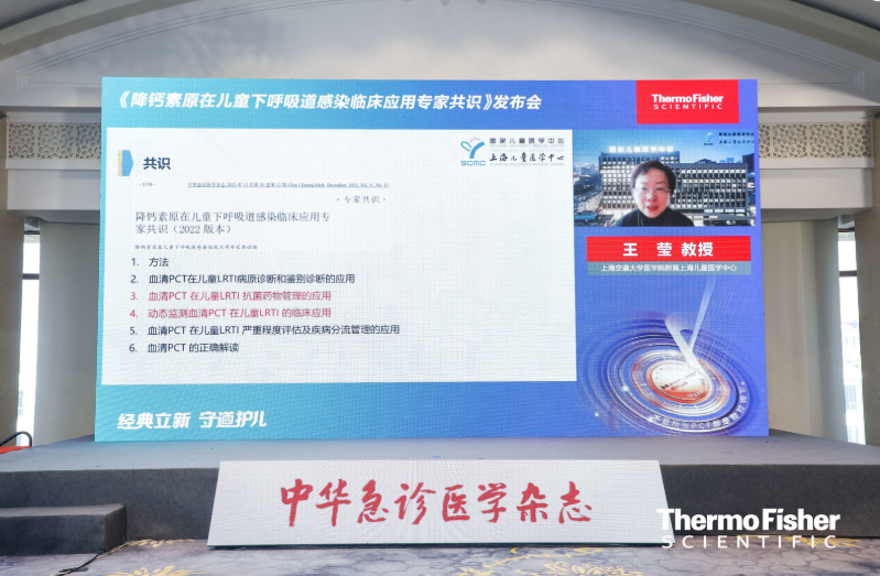 每年春冬都是儿童呼吸道疾病高发的时期。「高热、咳嗽、咽痛」流感样症状患儿明显增多。除了新型冠状病毒、呼吸道合胞病毒、流感病毒等可能大规模流行的病毒,细菌感染也不容小觑。如何快速判断下呼吸道感染(lower respiratory tract infection, LRTI)感染病因,是对儿科一线医生的考验。下呼吸道感染时抗生素治疗的时机、疗程也是临床经常面临的难题。 下呼吸道感染 LRTI 是指包括支气管炎、毛细支气管炎和肺炎的呼吸道疾病总称。LRTI是儿童常见疾病,也是儿童死亡的重要原因。2015年在全球范围内,LRTI导至了约800,000例死亡[1]。寒冷季节由于病毒传播性增加、环境温湿度变化、室内活动多增加人群传染等因素,是LRTI的高发季节。 2022年12月24日,在《中华急诊医学杂志》的支持下,最新发布的《降钙素原在儿童下呼吸道感染临床应用专家共识》针对临床热点问题进行了详细的阐述。赛默飞特邀共识组专家亲临会议解读勃拉姆斯降钙素原如何合理且科学的应用于儿童下呼吸道感染的管理,深入临床需求与应用,直击鉴别诊断、抗菌药物管理、动态监测、严重程度评估及疾病分流管理、结果解读五大主题。 直击直播现场,扫码可观看直播回顾 会议开幕致辞 本次会议,特邀浙江大学医学院附属第二医院马岳峰教授,北京儿童医院钱素云教授,浙江大学医学院附属儿童医院张晨美教授,赛默飞世尔科技徐佳杰博士为新共识发布致辞。 填补国内空白 满足临床需求 马岳峰教授致辞 马岳峰教授表示:2017年,美国FDA首次批准勃拉姆斯(B·R·A·H·M·S)血清PCT 0.25µg/L阈值应用于下呼吸道感染抗菌药物指导[2]。在2021年,中华急诊医学杂志发布了《降钙素原在成人下呼吸道感染性疾病分级管理中的应用专家共识》,获得了临床的广泛认可。今年通过大量文献检索,结合儿科实际的临床需求,由多位专家共同制定了《降钙素原在儿童下呼吸道感染临床应用的专家共识》。希望本次共识的发布,能够填补国内空白,帮助儿科医生,更好地应对儿童下呼吸道感染的鉴别诊断。 PCT水平可作为规范抗感染治疗的依据 钱素云教授致辞 钱素云教授表示:儿童下呼吸道感染是临床医生最常见的疾病,过去大家更多的依赖个人经验。PCT作为鉴别诊断和疾病管理的常用指标,新共识针对临床规范抗感染治疗提供了依据和参考,也希望广大的儿科医生,尤其是重症医学、呼吸、感染等临床医生在临床实践当中,进一步验证共识的推荐,并通过高质量的研究,为今后共识的更新及指南的制定提供有价值的循证医学证据。 张晨美教授致辞 张晨美教授表示:新共识目的是更好的服务临床,造福于患者。共识的发布只是起点,能让更多的临床医生知晓、理解、应用共识,还离不开所有专家背后的解读工作,未来要不断推广,随着疫情的平稳,希望能和大家再约线下深入讨论及落实共识的推荐意见。 共识发布仪式 解读一 病原学诊断:血清PCT < 0.25 μg/L可作为细菌性感染的排除依据 任晓旭教授解读共识 首都儿科研究所附属儿童医院的任晓旭教授解读内容为《血清PCT在儿童LRTI病原诊断和鉴别诊断的应用》,主要围绕着如下话题展开了详细的解读: 如何根据血清PCT水平进行儿童细菌性LRTI诊断和病原鉴别? 强调了血清PCT < 0.25 μg/L时呼吸道感染常见细菌引起的LRTI 几率极小,PCT可用于儿童常见细菌性CAP的早期排除,有助于识别无需抗生素治疗的患者。 如何根据血清PCT 水平评估LRTI 患儿出现全身性细菌感染的风险? 细菌性 LRTI 患儿血清 PCT ≥ 2 µg/L 时,菌血症及脓毒症风险明显增加。 PCT 联合其他指标是否可提高细菌性LRTI诊断准确性? PCT结合CRP检测效果良好,对儿童细菌性感染诊断有良好的临床应用价值。 解读二 动态血清PCT 可帮助进行抗菌药物管理 王莹教授解读共识 上海交通大学医学院附属上海儿童医学中心的王莹教授解读内容为《PCT在儿童LRTI抗菌药物管理的应用》,主要围绕着如下话题展开了详细的解读: 是否可根据血清PCT 阈值指导儿童LRTI 抗菌药物启动、调整及停用? PCT 0.25 μg/L指导儿童CAP抗菌药物治疗,可减少抗菌药处方,减少抗菌药暴露,缩短疗程,降低抗菌药物相关的不良事件发生率。针对低细菌感染风险患儿,停用抗菌药物PCT 阈值为0.1μg/L ;针对极低细菌感染风险患儿,停用抗菌药物PCT 阈值为0.25 μg/L。 动态监测血清PCT 在儿童LRTI 临床价值如何? 连续监测血清PCT 可以评价儿童LRTI 抗菌药物治疗效果。在连续监测血清PCT 时,如果PCT ≥ 1.4 μg/L 有利于确认细菌感染的临床诊断和治疗决策;反之,PCT 始终< 1.4 μg/L,应停用抗菌药物。 血清PCT 监测时机和监测频率如何确定? 轻症患者,可入院时检测PCT 以指导抗菌药物启用、后动态监测以指导抗菌药物调整或停用;重症患者入院时和入院后前3 d,可适当增加检测频次,以调整抗菌药物使用。 解读三 PCT在儿童LRTI严重程度评估及分级管理中的应用 闫钢风教授解读共识 复旦大学附属儿科医院的闫钢风教授解读内容为《PCT在儿童LRTI严重程度评估及分级管理的应用》,主要围绕着如下话题展开了详细的解读: 血清PCT 是否可用于儿童细菌性LRTI 严重程度评估? PCT可用于儿童细菌性LRTI严重程度评估,PCT > 0.5ug/L与影像学肺炎显著相关,PCT可用于儿童细菌性LRTI的严重程度评估。 是否可根据血清PCT 的水平进行LRTI 门急诊分流? 在门诊测PCT,以PCT < 0.25 μg/L 为阈值可以排除常