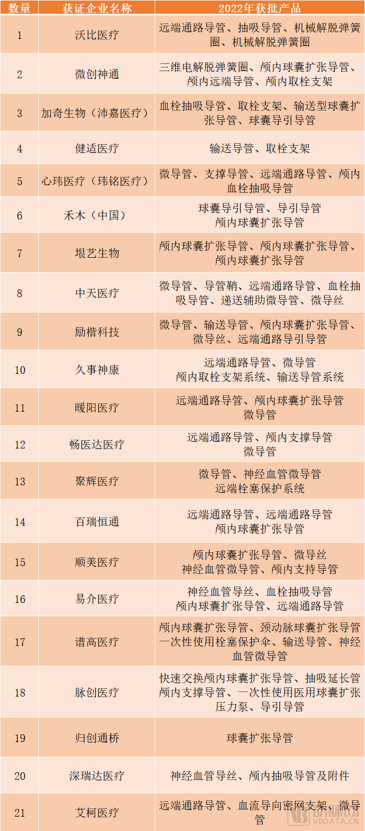 在去年的年终盘点中,我们观察到神经介入领域的资本市场趋于理性、创新产品进入兑现期、神经介入企业陆续出海寻找新的增长点、神经介入产品开始被纳入集采等诸多趋势。 根据这些观察,我们曾做出以下判断:缺乏资本优势的创新企业仍有发展机会;市场竞争将愈加白热化;神经介入渗透率将迅速提升,市场规模将继续增长;集采范围将进一步扩展,国产神经介入产品出海成必行之路;在“医、研、企、政、资”的支持下,神经介入领域的产品创新将加速。 我们回溯2022年:神经介入领域仅有励楷科技、徕瑞医疗、心凯诺医疗3起融资事件,可见资本市场已将视线逐渐转移;2022全年有120多款神经介入产品获批,赛道已十分拥挤。 同时,国内神经介入手术渗透率加速提升,各相关企业的神经介入业务在2022年迎来大涨,如微创脑科学2022年收入预计为5.2亿元-5.4亿元,较上年增长36%至41%,沛嘉医疗2022年收入预计为2.4亿元-2.6亿元,同比增长75.8%-90.4%;心玮医疗2022上半年营收7670万元,同比增长154.6%;归创通桥2022上半年神经血管介入业务收入达1.12亿元,同比增长160.1%。 沃比医疗、微创脑科学、归创通桥等企业在2022年加强海外市场探索,海外营收明显增长。例如,微创脑科学2022年海外业务收入首次突破人民币2000万元,较上年增长超过32倍;归创通桥2022年海外市场的营收则实现了49%的同比增长。 也是在2022年,国内各神经介入企业的产品先后获批,其中有大量同质化产品,但也有多款创新产品,如艾柯医疗推出的密网支架、沛嘉医疗自主研发的输送型球囊扩张导管、中天医疗的递送辅助微导管…… 可以看到,2022年神经介入的变化和发展基本吻合了我们在2021年末做出的预测。那么现在,站在2023年的开头,展望未来,神经介入领域发展将何去何从?企业将面临哪些新困难?2023年的神经介入领域又将有哪些新趋势? 扎堆注册,120多款产品获批 2021年以来,神经介入产品加速获批。 据动脉网不完全统计,2021年有超25款神经介入产品获批,2022年则有超120款产品获批。 不过,2022年获批的神经介入产品虽多,但大部分为同质化产品,竞争极为激烈。有业内人士统计,2022年神经介入领域获批产品中,球囊类有24款,占比20%;中间导管有23款,占比19%;微导管有17款,占比14%;通路产品共计63款,占比52%。 动脉网不完全统计,国产神经介入产品2022年获批情况 其中,中天医疗、励楷科技、脉创医疗、谱高医疗等创新企业获批产品较多,分别为6款、5款、5款、5款。 梳理国产神经介入产品2022年获批情况,可以看到:目前国产品牌获批的神经介入产品数量已远超进口品牌,且国产神经介入产品类型丰富,涵盖取栓支架、抽吸导管、弹簧圈、微导管、中间导管、远端通路导管、颅内球囊扩张导管等。 多种国产神经介入产品上市,代表着国产神经介入企业已能够满足大部分相关患者的临床需求,且能够满足不同患者的多样化需求。 但不得不承认的是:目前神经介入的总体市场格局依旧是美敦力、史赛克、强生等跨国械企主导。例如,神经介入缺血市场的国产化率约为30%,剩余70%的市场则被跨国械企占据。从产品上看,各个国产品牌的神经介入产品在性能和品质上也参差不齐。 另一方面,同类型产品获批变多,市场竞争已然加剧。在国家药监局官网以关键词“颅内球囊扩张导管”进行搜索,显示有32款产品;以“弹簧圈”为关键词搜索,显示有20款产品;以“远端通路导管”为关键词搜索,显示有21款产品。 图片来源:国家药监局官网 2021年,血栓抽吸还属于高壁垒市场。2021年5月,我国首个国产颅内血栓抽吸导管系统才获NMPA批准。在此之前,市场主要被健适医疗引进的Penumbra的ACE抽吸导管占据。但是在2022年,国家药监局批准先后了7款颅内血栓抽吸导管,让这一细分市场迅速变得热闹。 除了抽吸导管,2022年还有12款颅内球囊扩张导管获批、10款微导管获批、10款远端通路导管获批……另外,从河南集采各厂家的产品报名信息来看,中间导管有超40款,取栓支架接近20款。 通过上述数字,可以看到神经介入领域竞争的激烈程度。另外,这也带出了另一个思考:神经介入领域已经有如此多产品,还有创新的余地吗?——当然还有。至少临床上还有许多临床痛点并未被解决,这就是各企业需要创新和努力的方向。 例如,在以往治疗颅内动脉粥样硬化性狭窄(ICAS)的血管介入手术中,手术过程一般需要十二个步骤。沛嘉医疗自主研发出输送型球囊扩张导管,使这一术式变得简单、易操作。 相比于市场上其他产品,输送型球囊扩张导集成了球囊导管、微导管两种导管的功能。通过该创新产品,临床医生在操作手术时将省略以往的多次交换操作,减少由于术中操作引发的并发症问题,降低手术风险,提高安全性。 因此,神经介入领域仍有诸多未被满足的临床需求,有待各企业攻克。 从市场竞争看,对于微创脑科学、健适医疗、归创通桥等已占据较高市场份额的企业来说,面临竞品冲击,其市占率或将收到影响。不过,随着神经介入渗透率大幅提升,各企业营收或将保持稳步增长。 对于产品刚刚获批的企业而言,如何在大量竞对企业中脱颖而出,实现预期销售产出,也是必须面对的问题。这其中的压力,无疑也是巨大的。 常态化集采,国产品牌放量 2022年12月底,吉林省公布了21省弹簧圈集采联盟的中选结果,让中标企业放下了悬着的心。 但是,吉林省并未公布本轮