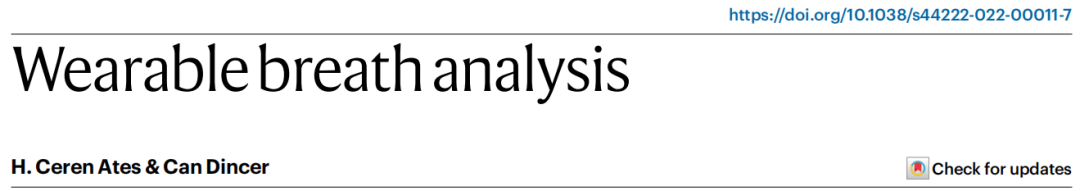 近日,2023年新增的期刊Nature Reviews Bioengineering上发表了一篇题为“Wearable breath analysis”的评论性文章。Nature Reviews Bioengineering《自然综述:生物工程》是《自然综述》系列的第一本工程学期刊,主要发表综述、观点和评论,涵盖生物工程各个领域,并专注于应用、转化和技术。这篇关于呼气分析的评论性文章中强调了呼气分析可穿戴设备广泛临床应用的里程碑,以及未来可能的挑战。