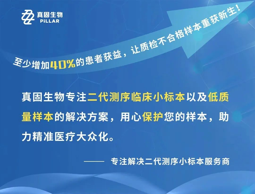 ✦ 应用背景 ✦ 肿瘤个体化治疗以疾病靶点基因诊断信息为基础,以循证医学研究结果为依据,为患者提供接受正确治疗方案的依据,已经成为现代医学发展的趋势。肿瘤的发生、发展涉及多基因调控的异常和人类遗传因素与自然环境的长期相互作用,随着基因组测试以及经验证生物标志物的可用性不断提高,肿瘤临床研究也变得日趋复杂(如肿瘤异质性、适应性、肿瘤演变和耐药性,以及药物与人体蛋白质组(即基因组表达的整套蛋白质)间未知相互作用)。基于肿瘤相关基因的全景变异分析,单次检测可筛选出更多具有辅助临床诊断价值的信息,用于指导治疗、预测药物疗效及评价预后,从而显著提高疗效,减轻不良反应,促进医疗资源的合理利用。 图1 . 临床医生对NGS检测复杂度的要求 为满足临床对于单次多种生物标志物的检测需求,真固生物基于杂交捕获测序技术,依托MGI、Illumina两大高通量测序平台,推出Z-Capture Pan-Cancer 580 Gene Panel(Z-Capture 580),检测580+个肿瘤相关基因,覆盖靶向用药、化疗用药毒性及敏感性、免疫通路和肿瘤遗传易感相关基因的位点信息。本产品还可以进行肿瘤突变负荷(TMB)评估,以预测免疫治疗疗效,为精准医疗、联合用药、临床实验入组等提供全面有意义的信息。 ✦ 产品简介 ✦ 2.1 产品参数 表1. Z-Capture Pan-Cancer 580 Gene Panel参数列表 2.2 产品优势 >> 全景变异分析 基于Z-Capture 580可在单次检测中评估数百个基因,包括指南和临床试验已确定可用于指导治疗的肿瘤相关生物标志物。可检测所有主要的基因组变异类别(SNV、插入缺失、CNV、融合),以及大基因组特征【TMB、MSI、HRD(HRR相关基因)】,最大限度地提高发现临床目标变异的能力。 图2. Z-Capture Pan-Cancer 580 Gene Panel整合Foundation One、MSK IMPACT和TSO 500检测内容。Z-Capture 580 = MSK +FMI +TSO500+ Others >> 整合检测,节省时间和珍贵样本 Z-Capture 580不仅可以评估常见的生物标志物,还可以评估罕见的生物标志物,从而增加识别目标变异的机会,节约活检样本,减少再次进行活检的风险和成本。 在无法获得组织标本时,也可以考虑采用液体活检样本进行检测(血液等)。而同步采取组织+血液双检策略可以揭示更多关于肿瘤相关基因变异信息。 >> 性能卓越 基于真固自主研发的杂交捕获体系,数据表现稳定、优异。比对率>99%、中靶率:85%~90%、覆盖均一度:>90%。组织检测下限可低至1%,ctDNA检测下限可低至0.2%。 图 3. Z-Capture Pan-Cancer 580 Gene Panel 在不同癌种检出率。580 Panel 针对各种癌症种类进行优化,具有高效的检出率。 我们统计了525例临床样本使用580panel检测的结果,其中组织样本376例,血液样本147例。血液样本阳性检出率达到100%,组织样本阳性检出检出率达到94%以上。 图4. 检出用药变异和各癌种阳性检出率的统计数据 2.3 性能评价 1) 使用NA12878、NA12877、菁良生物泛肿瘤800 gDNA对Panel的性能参数进行验证。 2)使用菁良生物泛肿瘤800 gDNA对Panel的突变检测准确性进行验证。 图7. SNV 突变检测统计。1% ~ 7% SNV均稳定检出 图8. Indel突变检测统计。2%~3%的Indel 均稳定检出 表2. 融合及拷贝数突变检测统计。融合及拷贝数变异均稳定检出 3) Z-Capture Pan-Cancer 580 Gene Panel与WES检测TMB的一致性分析。 图9. 580 Gene Panel与WES检测TMB的一致性。580 Panel与WES具有良好的一致性,其R2≥0.96 4) 临床样本检测经典案例分享 图10. EGFR L858R 不同变异形式 图11. TP53:c.75-20_96+32del Exon_Loss 580 Gene Panel 检测结果:MSH6 Py535* 突变;TMB=76,MSI-high 图12. 580 Gene Panel 检测TMB & MSI & dMMR 图13. 罕见ERBB2变异与CDK4扩增共存 ✦ 临床意义 ✦ 癌症是由一系列的基因突变造成的,临床研究表明只有一小部分癌症与强单基因性状相关,而大多数癌症是受多基因影响的。这种癌症不是由确切的某一个基因引起的,而是与许多基因位点都有关,每个基因位点都促成了癌症风险。同时,不同的瘤种既可存在瘤种特异性的驱动基因变异,也可能存在共同的基因变异。一个瘤种存在众多的分子变异亚型,从而提出"同病异治"或"分型而治"的策略;不同瘤种之间由于存在共同的驱动基因分型,则可以采取"异病同治"的策略。基于整合多肿瘤的全景变异分析技术Z-Capture Pan-Cancer 580 Gene Panel可分析涉及评估频繁突变的基因,以及与多种癌症相同的其他基因组异常,对癌症的精准诊断具有重要意义。 (图片来源于网络,若侵删) 表3. 截至2021年6月FDA批准的药物伴随诊断相关生物标志物 上海真固生物科技有限公司,由位于波士顿和上海的创始人共同创立,是一家兼具中国文化基因和美国科技背景的精准医疗技术公司,致力于以高通量测序文库制备技术及配套数据分析系统为核心的IVD产品研发转化,以及临床级精准诊断整体解决方案的开发应用。 公司拥有成熟的针对全样本类型的高通量测序“一管”文库制备技术和基于RNA的融合基因检测技术,大幅降低了检测成本;与试剂配套的易学易用的生物信息学分析软件,可以“一键”完成从原始数据到突变列表注释的全部数据分析流程。同时提供从样本提取到报告的全流程自动化、“一体化”院内LDT/IVD整体解决方案。综合技术优势和成本优势的叠加,解决了当前高通量测序技术在应用推广过程中存在的效率低、准确率低、流程复杂、成本高等障碍,使高通量测序可以在院内实现“一天”级实验流和两天级工作流。推动了基因检测在肿瘤、遗传病等领域