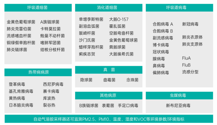 空气中的病原微生物主要以生物气溶胶的方式存在,是呼吸道传染病最主要的传播渠道之一。2019年末,新型冠状病毒疾病(Covid-19)爆发,我国发布的《新型冠状病毒肺炎诊疗方案》中明确气溶胶传播是该传染病的主要传播方式之一。目前,多种传染性疾病被证明均可通过气溶胶的形式传播,严重影响人体健康、进而影响经济发展与社会运行,危害巨大 。因此生物气溶胶领域的研究进展被全社会广泛关注,对于生物气溶胶检测与监测也成为疾病防控部门关注的重点,同时临床医院、重点场所(人员密集的学校、机场、车站)对于生物气溶胶检测的需求也日益迫切。 继2020年《中华人民共和国生物安全法》发布后,国家又陆续出台生物气溶胶采样器的相关国标(如:《GB/T38517-2020 颗粒 生物气溶胶采样和分析 通则》、《GB/T39990-2021 颗粒 生物气溶胶采样器 技术条件》等)。2022年《T/HCSA003-2022体育和文化场馆室内空气质量要求》的正式发布,填补了行业空白,对各大公共场所的室内科学防疫起到了示范性作用,对于医疗疾控、动物养殖、企业、生产等环境空气的安全与健康实时预警和检测提供了全新的方向。 为响应相关政策,满足各个领域的检测需求,畅合生物研发了升级版生物气溶胶采测仪。该系统即采即测,检测范围广,适用于所有行业领域,为保障城市空气安全与健康,促进和提升城市公共卫生应急管理体系和治理能力提供技术支持。下面就来看看这款升级版生物气溶胶采测仪吧! 背 景 气溶胶是由极其细小的固体或液体颗粒,在空气悬浮过程中失去水分而形成。含病原微生物(流感病毒 、新冠病毒、链球菌等)的气溶胶随着空气一起流动后被健康人吸入,可造成远距离的传播感染。 升级版生物气溶胶采测仪基于特有的空气中致病生物因子在线监测技术集采样和检测为一体,完全满足以上国标中采样和检测要求,可实现在线进样,常态化监测,无需专业人员,即时得到分析结果。不但可快速检测、预警空气中传播的细菌、病毒等生物致病因子,还可监测温度、湿度、VOC、PM2.5、PM10等环境空气指标。 云平台 产品特点 ➣ 全自动采测一体 集气溶胶采集与核酸检测功能为于一体,实时分析 ➣ 高效快速 最快12分钟即可读出阳性结果 解放人力,节约时间,提高工作效率。 ➣ 适配性强 一次采样可最多进行8项指标 除核酸检测外,还可兼容生化免疫分析体系 ➣ 简单便携 小巧轻便(166W*250H*65Dmm),易于携带,可悬挂可移动,灵活放置于公共空间 操作简便,无需专业人员 ➣ 冻干球技术 采用冻干球试剂,可保持试剂原有结构,确保常温储存下的良好活性 ➣ 安全性高 一次性耗材,避免交叉污染 ➣ 定制化服务 根据不同应用场景,可提供定制化检测方案 检测范围 可快速检测40多种生物因子,如新冠病毒、流感病毒、嗜肺军团菌、金黄葡萄球菌等,还可同时监测环境空气指标,如温度、湿度、VOC、PM2.5、PM10。 应用场景 公共卫生:医院、海关、疾控等 畜牧养殖:养猪场、养牛场、养鸡场等 净化评估:消杀评估、净化器评估等 公共场所:学校、酒店、餐厅、楼宇、电梯等 公共交通:高铁、地铁、车站、机场等 会展中心:展馆、会场、体育场、商场等 娱乐场所:电影院、会所、网吧、KTV、美容养生馆、健身房等 食品加工:屠宰场、肉制品加工厂、饲料加工厂、谷物磨制厂等 欢迎数据服务企业与冻干球试剂厂家合作交流! 招募独家代理 此外,畅合生物研发的生物气溶胶采样器重磅上线,利用湿壁气旋技术采集空气中的生物气溶胶,在采集过程中最大程度保持样本活性,为后续现场检测提供可靠保障。可远程控制启停及设置参数,自动采集,安全性超高。 现全国范围内招募区域独家代理,携手共赢! 合作热线:400-157-9188 关于畅合生物 Changhe BioTech 苏州畅合生物科技有限公司基于等温扩增技术与反应平台的研发,自主研发了采样、微流控芯片检测、自动化、智能化的技术和产品,为临床检验、家用核酸自测、环境生物气溶胶分析、农林养殖业、公共卫生及生物安全相关领域,提供准确、及时、高效的试剂和仪器产品、技术服务和解决方案,覆盖多领域多场景。 |