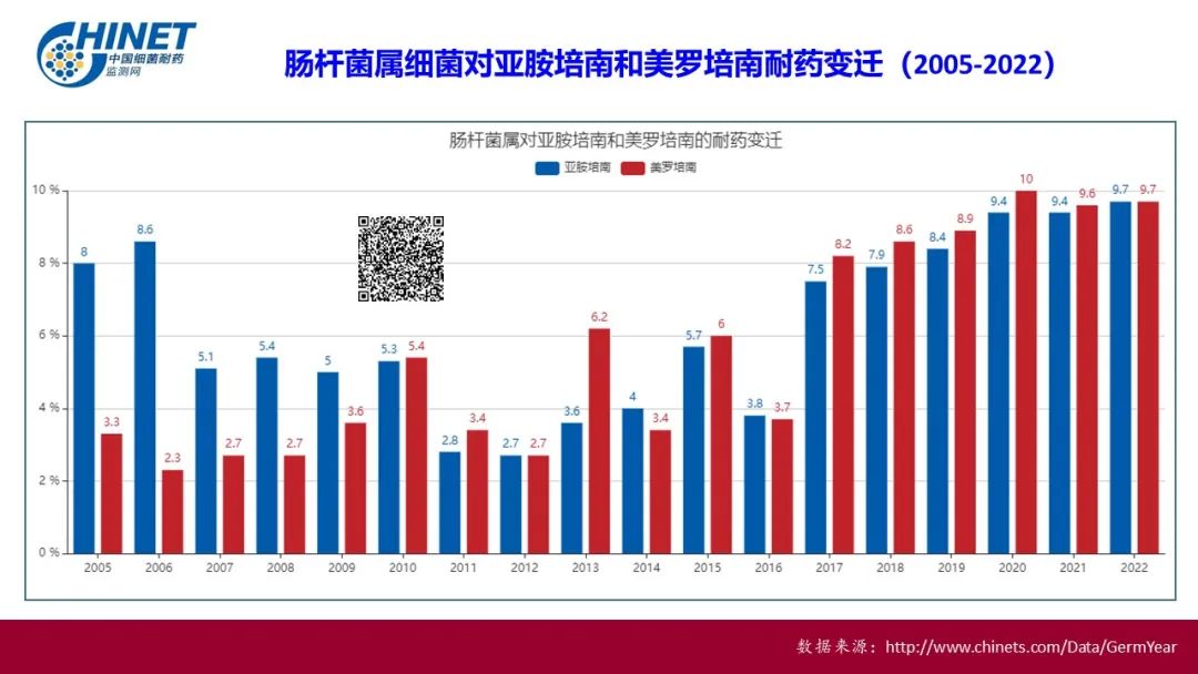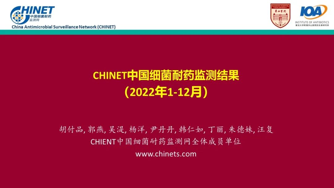 2023年2月18日,复旦大学附属华山医院抗生素研究所胡付品教授在www.chinets.com发布了最新《CHINET中国细菌耐药监测结果(2022年1-12月)》。