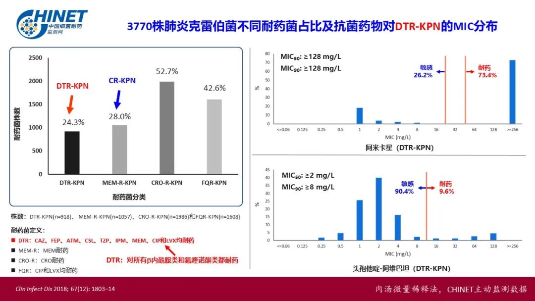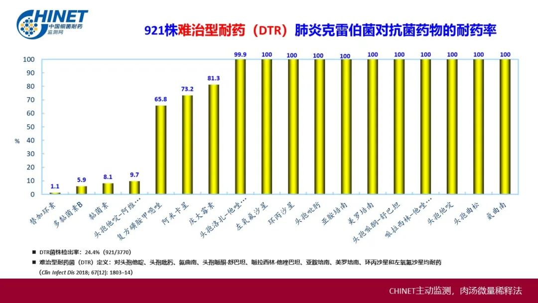 2022年CHINET中国细菌耐药监测结果显示:硫酸黏菌素对碳青霉烯类耐药及难治型耐药(DTR)肺炎克雷伯菌、铜绿假单胞菌、鲍曼不动杆菌耐药率低,高度敏感!