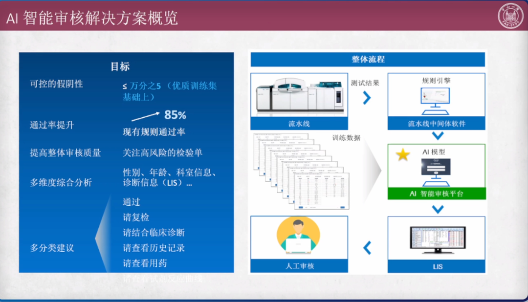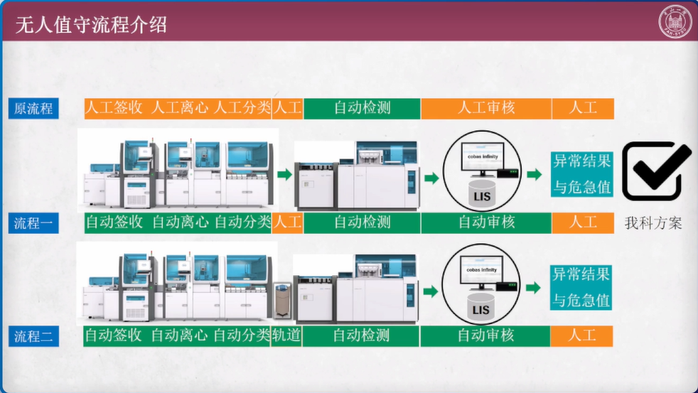 随着国家防疫政策的不断优化,各地各级医疗机构临床实验室的工作重心正逐步回归到临床诊疗上来。过去三年,新冠疫情的出现一方面是对全体检验人的一次严酷考验,另一方面也实际促进了检验医学的发展。在新形势下,检验医学将走向何处?医院检验科、区域医学检验中心和独立实验室作为检验医学发展的“三驾马车”,未来的发展重心又在哪里? 2022年 12 月 15 日晚 19:00,"2022年检验医学质量与信息化管理"圆桌论坛第十期(检验医学“三驾马车”对检验医学未来发展的展望),将就医院检验科、区域医学检验中心和独立实验室各自未来的发展展望,邀请行业专家做深度解读和分享。 【直播回放视频】 专家讲座内容精要 《医院实验室对检验医学发展的展望》 中山大学附属第一医院-张式鸿教授 目前我们科室年样本数约400多万,其实门急诊220多万,年测试数4500万,其中3000多万来自门急诊;日均样本数2.1万,门急诊样本数约为9000,日测试数13万,其中门急诊约8.2万。 2019年疫情前我科室急诊样本总量已经占到总量的52%,到现在该数据已经提升至55%。从检验角度来讲,急诊检验对临床的帮助越来越大,临床对急诊检验的要求也越来越高,同时需求会越来越多。 日常工作中样本时间分布集中,主要集中在上午7:00~11:00的的高峰。样本分布的集中也给各部门的工作带来一定的挑战。另外,夜班样本量也已经达到总量的将近30%,每日样本量可以达到2000多个,这也是急诊检验非常大的挑战。目前急诊实验室样本TAT时间60%~70%在90分钟以内,门诊常规样本的TAT时间也大部分都在90~120分钟之内,报告发布时间也集中在9点到12点之间,这也对实验室实践、空间、人力、物力的调配有着很高的要求。 门急诊实验当下存在的挑战: 1.人员:人员不足,样本量增长过快;夜班样本量2000左右,2人负责。 2.空间:门急诊空间有限,但占样本量的52%。 3.检验质量:样本量大,TAT时间要求高,人员和场地有限,如何确保检验质量是巨大的挑战。 4.样本周转时间:场地有限,人员不变,样本量过快增长的情况下,如何保证TAT。 急诊最短缺的是人,尤其是夜间急诊。过去门急诊实验室从签收、离心、上机到危急值处理、审核等所有的流程都有时间上的等待,都需要人员处理。 如何减少人为介入,自动完成流程的对接,提高工作效率?我们利用现有的各种设备,主动减少人为处理干涉的环节,形成一个无人值守流程。 无人值守流程里包括自动签收、自动离心、自动分类、自动检测、自动审核以及最后的人工处理异常结果和危急值。由于空间的问题,我们目前没有做到自动对接上样。当然最理想的的情况是每个环节都能够自动对接,但这明显还不现实,而且目前所谓的流水线并不一定是高效率的,在批量处理或者减少人力方面确实,但不是所有的自动对接都能提高我们的工作效率。 无人值守前处理系统需要具备哪些条件? 1.自动化样本前处理/流水线系统,具有可实现第三方对接的批量装载系统(BLM)的前处理系统。前处理离心机系统具有条码阅读装置,同时离心机需支持LIS系统指令以便选择离心参数。 2.自动化中间体系统,功能强大的自动化中间体软件,实现监控前处理样本处理情况,并实施反馈给用户。 3.功能强大的LIS系统,能同时实现与前处理离心机单元以及前处理的对接。 样本前处理过程如何实现无人值守自动化? 1.传送端口在门诊窗口外; 2.样本实现穿越天花板运送以及自动签收 3.有样本传送是启动BLM批量转载系统 4.离心机由LIS控制 5.识别样本质量,正常样本传送至目标区,异常样本传送至血清质量错误去。 目前我院门急诊前处理处理的样本覆盖门急诊128项检测项目,9月份处理样本58828份,单日最高3383份,日均2000份。 自动签收与智能离心 样本通过前处理以后,已经同LIS系统完成信息对接,只要样本进来,就会完成自动签收并记录相应信息。因此不再需要跟工人去核对样本,既节约了人力又加速了后续流程。 样本质量检测的重要性在于样本质量直接影响检验结果。通过智能样本质量检测替代离心后的人工肉眼观察,并且全程提示,保证样本质量,同时提醒不同的项目存在的关联,出现问题样本,我们会及时跟临床进行沟通,进行复检或者其他处理,减少样本的实验室等待时间,同时也可以给临床提供更优更快的检验结果。 同时还会把样本的质量检测信息,通过前处理中间体平台发送到LIS系统里面,由LIS接受存储并呈现。可以实现自动判断血清质量、剔除问题样本、避免无效检测、实时监控、主动提醒、实现可视化管理,减少人员再核对的工作量,降低人员的工作强度。 通过前处理中间体系统的样本生命周期监控,24小时实时滚动监控,当天所有的样本状态都可以通过智能监控,实时看到样本所在环节,未处理、未报告提醒工作人员及时处理并进行报告。 因此,前处理中间体系统能实现TAT预估、工作量预估和提前准备。 无人值守带来的成效 全程可控:减少人为影响因素;缩短TAT;提高工作效率;减少劳动强度,尤其是夜班急诊。 可视化:有据可依,及时退检,及时纠正抗凝剂,减少病情延误,离心符合要求。 为什么需要自动审核系统? 样本量大、需要人处理的环节太多; 来不及及时离心同时还要试剂准备、做定标质控等; 人员工作能力和熟悉程度有差异; 科室样本量增长快而人手增长慢甚至不增长; 因为事情对,结果出来后不能及