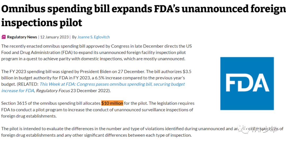 2023年1月,美国国会通过一揽子财政法案,专项拨款1000万美金用于FDA海外飞行检查,将原来的“先通知、再检查”改为“不通知直接抽查”。印度与中国作为制药产业链大国被重点关注。