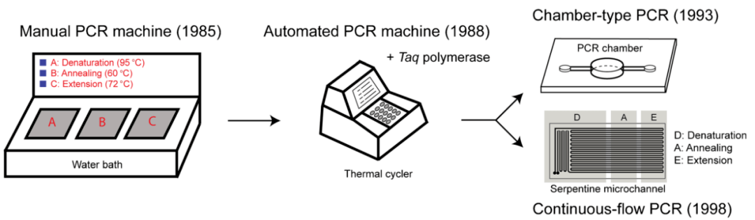 图1 PCR仪器的发展历程(Lee NY., 2018)