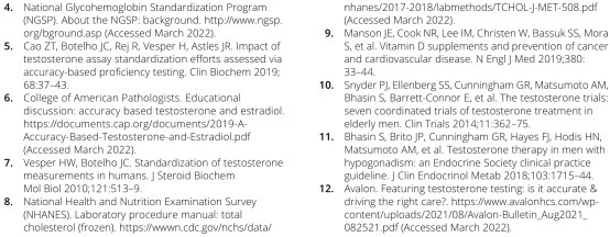 检验医学的成功,还有很多工作要做 冯仁丰 临床实验室检测是准确的,并在检测系统间和整个时间内是可比较的,是为病人诊疗和公共卫生系统是关键。以证据为基础的临床实践导则建议特定的决定点,去指导临床决定。电子卫生记录包括病人实验室数据、在卫生系统间的可转换、通知医师关于病人卫生保健病史。实验室数据在卫生系统内产生,并在卫生系统间用于确定病人群体、证实公共卫生关注,并跟踪结果。病人进入了将他们的实验室结果,与发表的可用信息比较,并与卫生保健提供者讨论。这些近期的发展已经推动了临床实验室的角色,和引入了实验室的机会,去为病人和卫生保健梯队提供有价值的信息。但是,这些进步和机遇要求准确和可靠的实验室检测。可靠性在这个层面上,由诸如分析灵敏度、特异性、精密度、和整个时间一致性等的特性组成。实验室检测结果的一致性和标准化,一致结果的更特定的做法可实现这个。一致性创建了实验室检测结果,可应用去实践导则、可比较、和在卫生系统间在整个时间可互换信息。 不一致的检测阻碍了有效的和相应的卫生保健作用,影响临床实验室能力为卫生保健梯队有效和成功地作出贡献。结果很差的一致性的临床影响已经被说了许多年。例如,2010年医学研究院认识到,“一个单一个人可被认为是维生素D缺乏或充分,取决于检测血液检测的实验室”(1)。临床实践导则,如2013内分泌协会对诊断和治疗多囊卵巢综合征(PCOS)的导则,指出“在睾酮(T)水平的变异和标准化检测很差下,难以确定一个绝对水平,可诊断PCOS和因雄性激素过多症其他原因所致”(2)。一个人可能被认为缺乏或充足[维生素D],这取决于血液测试的实验室。另外,研究发现,雌二醇缺乏准确度去检测病人经芳香酶抑制剂治疗的非常低的血清雌二醇水平(3)。需要准确和可靠的检测,也反映在由主要利益攸关方公布分析物标准化优先事项清单,如激素准确检测合作伙伴关系和国际临床实验室结果统一联盟。 CDC开始标准化传统的血液脂类检测超过了60年,并实现了全球检测产品的检测可比性。CDC计划的成功激发了建立国家糖化血红蛋白标准化计划(NGSP),这是CDC模仿了胆固醇参考方法实验室网络计划(4)。血红蛋白A1c的检测现在被高度标准化,并在全球具有可比性。CDC仅在近期收到了国会的资助,去支持它的标准化和一致性计划。这个至关重要的资助使得CDC可以:(a)保持和扩展标准化计划,包括新的和出现的心血管生物标志物,如脂蛋白;(b)扩展它的范围,从4个传统的血液脂类(总胆固醇、三油酸甘油酯、和高-和低-密度脂蛋白-胆固醇),到26个分析物,与内分泌和其他慢性疾病关联;(c)增强技术给其他组织支持,如:美国临床病理协会(CAP)、国家标准和技术研究院(NIST)、和英国国家生物标准和对照研究院(UKNIBSC)、和法国国家计量实验室。资助进一步使得CDC建立新的参考区间发展项目,促进使用一致性检测,并评估POCT设施。CDC的临床标准化计划(CSP)由相应计划组成,集中于项目和技术支持。这些活动使得数千实验室得到他们检测产品(方法)分析性能信息。CDC CSP协助实验室和检测产品厂商,去改善检测准确度和可靠性,通过全面、独立的、和公开的评估,并证明计划参加者,符合由临床利益关联者建立的性能指标。[http://www.cdc.gov/labstandards/hs.htm]。 通过CDC CSP的工作,实验室和检测产品厂商具有一个相应工具范围,可用于相应的评估和改善分析性能。它创建了和供给高质量、单一供体的参考物质,支持了有证参考物质可用在计量组织,通过CDC CSP和室间质量评估提供者,并实施和支持以准确度为基础的纵向和跨越部门的调查。实验室和检测产品厂商成功地参加了CDC CSP,展现了与其他实验室和厂商比较,具有较高水平的准确度和可靠性(5,6)。另外,继续参加这些计划,可导至在准确度上的连续改进(7)。 使用准确和可靠的检测产品的好处,被利益关联者很好地认可。组织者如准确激素检测的合作,包括了AACC和CAP,激励使用标准化的检测产品。研究者使用被CDC CSP标准化的检测产品,包括被CDC参考实验室在他们的研究中确定的质量控制物质,如国家卫生和营养检查(the National Health and Nutrition Examination)调查(8)、维生素D和OmegaA-3试验(VITAL)(9)、和T-试验(10)。如内分泌协会形成了在标准化检测下建立了临床决定点的导则(11),并形成了关注检测质量和标准化的教育材料。另外,设施厂商在包装说明书上关于溯源性到CDC CSP的信息,并让购买支付者认识到试验标准化检测的重要性(12)。 除了有相当的进展外,为改善用于病人诊疗的检测产品准确度和可靠性依然在努力。标准化计划的参加是自愿的。结果,标准化的和非标准化的检测产品被用于病人诊疗,没有任何差别,例如,即使CDC的维生素D的标准化-验证计划,已经进行了9年,无标准化的检测产品没有足够的准确度,还在继续使用;这样,持续存在错误分类病人的潜在性,正如近期CAP报告中指出的。临床应用连同分析性能要求在改变。如低密度脂蛋白-胆固醇的靶值,在近期导则中,远低于以往的国家胆固醇教育计划导则。所以,分析性能要求和由国家胆固醇教育计划导则形成的评估需要相应改变。随着检测校准一致性,其他样品特定因素影响了检测的准确度和可靠性,如与分析特异性有关的问题更明显了,是检测准确度的关键。作为第一步,CD