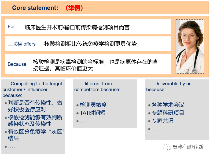 比如推广:科室会是推广,卫星会是推广,自办会是推广,价值主张是推广,多临床研究中心是推广,专家共识是推广……针对术前核酸,有的企业擅长事件营销,有的擅长线下销售,有的擅长网络导流,有的擅长一对一推销……术前核酸还处在早期阶段,还有希望能做360度沟通的,大家也都是各显其能的。