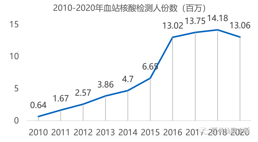 考虑到疫情影响以及国人志愿无偿献血意愿不高,叠加不断有新玩家入场、核酸检测试剂盒价格逐年走低,未来血液核酸检测市场增速放缓,天花板可见。
