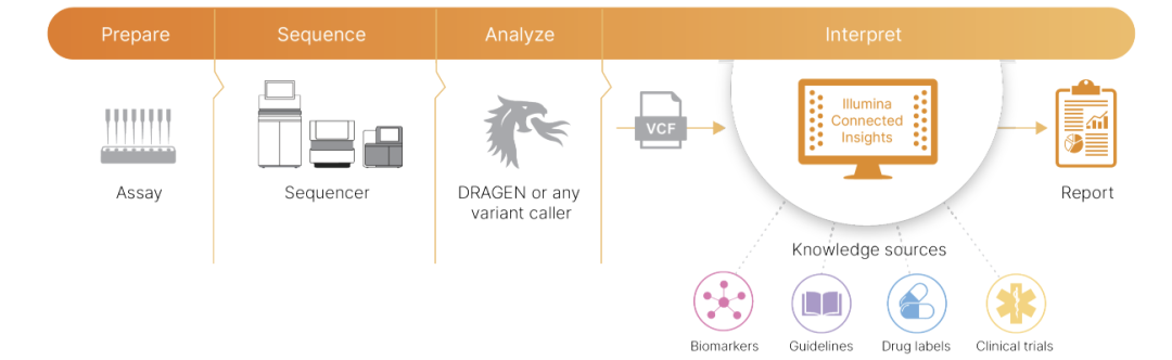 业界传闻,做NGS检测,家里没几个靠谱的生信,那基本玩不转。 即便转起来,也是磕磕绊绊,困难总比方法多。 而生信,也一直是困扰大多数NGS检测企业的一个顽疾。 没办法,生信生信,既要懂生物学又要懂信息学,一个人拿两份钱,这很合理吧? 而现在,这些NGS检测公司恨不得一毛钱掰成两半花,有多肉疼不用我多说了吧。 那么,现在,它来了。 More than Connected 2022年3月27日,Illumina官方宣布最新开发的基于云端的用于NGS三级分析的套件Connected Insights发布。 该款软件被设计为用于肿瘤测序的三级分析,支持检测包括SNV/indel/CNV/SV/Fusion/splicing,并能够支持包括TMB,MSI和HRD泛癌种biomarker。 通过链接外部数据超过45个以上的数据库,实现对指南、药物、临床试验的数据整合,最终能够提供完整的报告。 Connected Insights的发布算是补全了Illumina下游分析的最后一个环节,允许客户通过测序后DRAGEN平台直接进行二级分析,随后导入Connected Insights进行三级分析。 也就是说,通过动动手指,就可以做完一个完整的生信流程,顺便卷了下医学部的朋友们。 More than Oncology 根据Illumina的规划,能够进行肿瘤的somatic variants的分析支持肿瘤生信流程以外,Connected Insights在未来还将支持包括WGS在内的分析流程,进一步扩展适用范围至罕见病的检测分析。 借华盛顿大学Eric Duncavage教授的话,Illumina的目的是建立一个类微软Office套件的一个应用,实现能打字、点鼠标就能做NGS的三级分析的目标。 目前看来,Illumina除了在前处理自动化布局不忍直视以外,已经初步建立了试剂盒(NIPT系列和TSO系列)、测序仪、分析平台、分析报告套件的整个流程闭环。 而且,应用场景也极有可能突破肿瘤、罕见病这两个场景,未来不排除进入mNGS等其他领域。 这将给NGS检测公司带来2个变化: 首先,降低检测公司/组织的进入门槛,只要负责喂饱Illumina的测序仪,其他你甭管。 比如说最近炒的火热的院内LDT(虽然这货并不在国内发布,也许某一天呢?)。 其次,降低检测公司/组织的创新动力和解决问题能力。 逻辑很简单,以前是Linux上自己打代码,自己做troubleshooting,现在动动鼠标就能搞定,折腾个啥?大不了给Illumina技术支持打个电话嘛。 当然,这也意味着检测公司/组织将更加依赖Illumina,增加了对Illumina的粘性,客观上加上了未来对Illumina的议价能力。 MGI做的如何? 作为Illumina国内直接对标,MGI从样本到数据也实现了全流程的布局。 不过,与Illumina正好相反,MGI的前处理产品让人眼花缭乱。 从最初的核酸提取、文库制备都有自动化的产品。 然而,在三级分析上,MGI的布局就显得拘谨的多。 其ZTRON一体机除了在DNBSEQ-T7和Tx系列产品上进行标配外,确实支持定制化的应用场景。 然而,就公开资料来看,ZTRON系列仍然止步于二级分析,并没有将手伸向三级分析。 通过自带的ZMART应用市场,整合第三方软件是能够串起来很多应用场景,不过也只是串起来,还没有到点点鼠标就能出报告的底部。 这里面推测有3个原因: