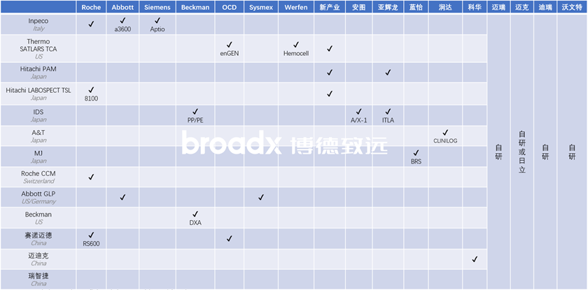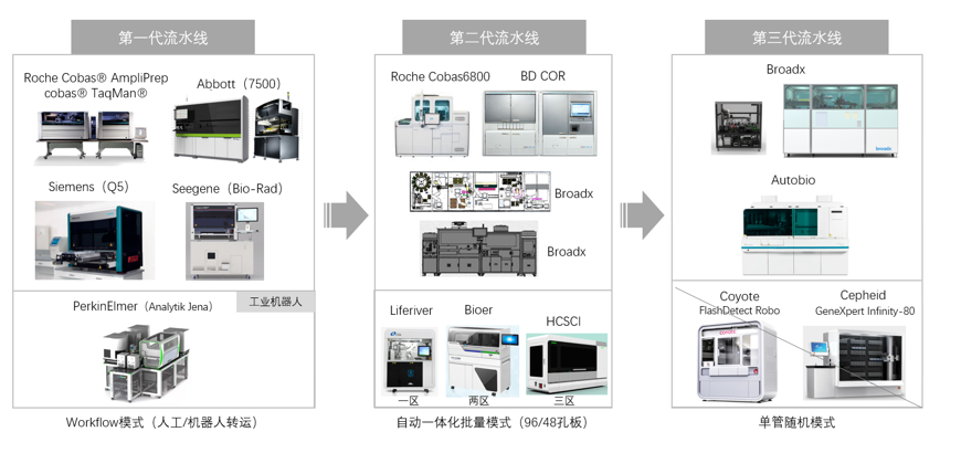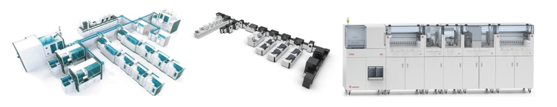 引言:近期去长沙参加中华医学会第十七次全国检验医学学术会议NCLM,白天参会,晚上老朋友和前同事聚会,畅谈行业和生活,不亦乐乎。虽说是私人聚会,但大伙所在企业也颇有行业代表性:罗氏、迈瑞、新产业、希森美康、润达、瑞莱谱、天瑞、华大、丽珠,笔者是唯一在创业公司的。聊到酣畅处,有朋友建议笔者对IVD行业目前火爆的主流赛道——流水线和TLA——进行一次分析和复盘。其实,笔者很早之前就想写一篇这方面的文章,梳理下这些年工作的所见所感。从业十余年,笔者工作内容主要涉及生化免疫级联流水线、TLA全实验室自动化、分子实验室自动化、中间体软件系统以及信息化等,但考虑到这些工作专业性强,技术门类涉及广,加之行业在飞速发展,同时也担心自身认知能力有限,迟迟不敢动笔。这次在朋友的怂恿下,拍案而起,说写就写,回家当天晚上就开始敲键盘。 医学实验室自动化(medical Lab Automation System,简称mLAS),按照技术发展及自动化程度,分为三个阶段:单机自动化、级联自动化、全实验室自动化(Total Laboratory Automation,简称TLA自动化)。即单一技术路线的标本检测全流程自动化,包括上样、标本处理、物理/化学/生物反应、检测与分析。目前IVD行业大多数领域均已实现了单机全自动分析检测,例如:临检类、生化、免疫、凝血。单机自动化还在发展中或不成熟的有:分子、测序、质谱、微生物、病理。这些还没成熟的原因常常是标本检测流程长、操作复杂,部分操作尚需人工,就拿分子诊断来说,操作环节涉及:试剂配制、标本上机、开盖、分杯、闭盖、加热、震荡、超声处理、核酸提取、反应体系构建、扩增、测序及生信分析等,而且不同环节还需要独立的操作环境要求。级联是电气工程的专业术语,在IVD行业人们更喜欢称之为“流水线”,流水线建立在单机自动化的基础上,通过控制软件和信息系统进行级联。目前已经或相对成熟的级联自动化,包括:血液流水线、生化/免疫流水线、凝血流水线。比如,血液流水线,可将全自动血细胞分析仪、全自动特定蛋白仪、全自动血液形态学检验设备(推染片机、阅片机)、全自动糖化血红蛋白分析仪进行级联整合,提供全面的临床检验血液分析服务。在商业策略上,企业常常为了打通临床某一方面应用场景,会将不同设备进行整合。比如,为了实现“感染炎症”大套餐,将全自动血细胞分析仪、全自动特定蛋白分析仪、全自动血沉分析仪、全自动免疫层析仪或者全自动化学发光免疫分析仪进行了级联整合。再比如,将全自动化学发光分析仪、全自动流式荧光免疫分析系统进行级联,为医院提供更全面、更快速的免疫检测,例如肿瘤标志物、过敏原、自身免疫性抗体、细胞因子。未来还可能将单分子免疫分析系统进行整合,提供更多的免疫检测菜单,例如神经退行性疾病(阿尔兹海默疾病AD)和眼科相关检测。其手段是采用工业自动化技术、中间体软件控制系统、信息化系统,将所有检测系统(包括单机自动化和级联自动化)通过标本传输系统进行互联,同时配套标本的前处理系统、后处理系统,实现医学实验室完全自动化甚至是无人化,极大提高标本分析的效率及质量控制的最优化,把人从纷繁枯燥的检验工作中解放出来。比如,业内曾有人提出“大凝血”组合概念,将全自动凝血分析仪(经典凝血)、全自动血栓弹力图仪、全自动生化分析仪(D-Dimer)、全自动化学发光分析仪(新凝血四项)等进行TLA式整合,给临床提供完整的凝血/止血检测服务。这种整合无法通过级联流水线来实现,因为标本的类型不同,有全血、血清/血浆。再比如,有企业计划将免疫、LC-MS质谱进行TLA式整合,以提供完整的激素、维生素检测。再比如,有企业计划将生化、电解质、ICP-MS质谱进行TLA式整合,以提供完整的电解质或微量元素检测。以上组合,底层逻辑都是以纵向的临床需求为牵引,来进行检测平台的横向整合和集成。当然,巨头企业出于商业考量,或者实验室负责人出于管理和质量控制角度,也会考虑将所有检测平台实现TLA整合。由于医学实验室的技术路线及产品种类繁多,鉴于研发能力及资本投入的有限,目前没有任何企业能完全掌握和开发出所有单机或级联自动化产品。很多企业在市场上打出了TLA概念,一般都只是2~3种自动化设备的TLA联机。当然,由于行业未来会越来越内卷,以及“我全都要”的心理,大企业肯定会不断补全各细分赛道,为医学实验室提供真正的整体解决方案。2. TLA的前处理系统、后处理系统、标本传输系统一般包括:标本自动分拣模块、扫码模块、标本状态识别模块、离心模块、开盖模块、分杯模块、转运模块。业内也有将标本前处理系统称作目标任务自动化(Task Targeted Automation,简称TTA自动化)。前处理系统在业内有2种设计,一种是分体式设计,这种可以根据实验室具体需求来定制化选择不同模块的组合,相对灵活,但往往占地面积大,成本也相对高。另外一种是一体化设计,结构更紧凑,占地面积小,但损失了组合灵活度。如果在功能上想要进行组合,需要在工厂进行一定程度的定制化改装后,再发往客户。· 磁悬浮轨道:行业内应该是西门子首推,传输速度快。· 无源静态轨道(NFC):雅培的GLP实验室自动化系统,采用独立的小电车,业内俗称“小特斯拉”,进行单个样本的运载。TLA自动化的核心组成部分是各类分析仪器,