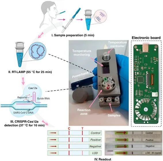 成功管理传染病和流行病的首要任务是快速准确地检测病原体,新冠就是一个最好的例子,并且POC检测的重要作用和需求也在疫情中凸显出来。 根据世卫组织给出了关于POC检测的ASSURED标准:价格合理(Affordability)、灵敏度(Sensitivity)、特异性(Specificity)、易操作(User-friendly)、快速可靠(Robust)、便携性(Equipment-free)及即时性(Deliverable)。 但是其实,要开发出符合所有这些标准的病原体特异性POC检测还是有难度的。因此,利用现有技术的结合一直是近些年体外诊断企业的重点努力方向。 其中最具有突破性并已有结果的一个技术就是结合了等温扩增的CRISPR技术,满足了ASSURED标准,是开发新一代POC诊断的理想方法。 本文将重点总结基于LAMP的CRISPR技术,围绕以下几个方面分享: 1)LAMP和CRISPR技术 2)为什么选择LAMP与CRISPR技术结合 3)LAMP-CRISPR技术在POC平台上应用 01 LAMP LAMP环介导等温扩增是在2000年由日本荣研化学株式会社纳富继宣博士发明的一种简单、快速、准确、便宜的新型基因扩增方法,随后被用于各种人体、动物和农业的病原体检测。尤其是在新冠疫情期间,随着许多改良的LAMP方法应用于检测SARS-CoV-2病毒,LAMP技术已进入了黄金时期。 该技术主要特点是用到4-6个识别目标DNA 特定区域的引物。扩增反应首先由具有链置换活性的Bst酶和两个特别设计的引物引发形成环状结构,引起随后几轮扩增后产生大量的DNA。通常来说,1 - 10个DNA拷贝可在15-60分钟内扩增获得 10^9 – 10^10 拷贝的DNA产物,是灵敏度和特异性都很高的扩增方法。 LAMP反应操作简便,不需要像qPCR一样经过不同温度循环,可以在60-65°C恒温下扩增,其反应结果可以通过浊度法、荧光法和探针法进行观察。 02 CRISPR CRISPR (Clustered Regularly Interspaced Short Palindromic Repeats,基于成簇间隔短回文重复序列 )作为一种基于RNA的后天免疫防御系统,其间隔序列与噬菌体或质粒序列存在同源性,能利用靶位点特异性的RNA指导Cas蛋白靶向几乎所有生物和细胞中遗传错误的基因。 CRISPR/Cas系统由靶向外源基因组材料特定区域的引导RNA序列(gRNA)和效应Cas(CRISPR相关核酸酶)蛋白组成。 CRISPR/Cas系统是一种非常独特且极具前景的技术,可用于基因编辑和分子诊断,能够通过编程gRNA序列靶向任何基因区域,其在传染病检测中最重要的作用是通过使用Cas蛋白识别病原体和基于核酸的诊断。 CRISPR/Cas技术在核酸检测中的使用需要前置扩增或后置扩增。通过将CRISPR/Cas技术与PCR或等温扩增,如LAMP、RPA、NASBA和RCA等方法相结合,开发了新一代的分子诊断方法,可以高灵敏度和特异性检测DNA和RNA。 03 LAMP-CRISPR 基于LAMP的CRISPR技术是近年来研发出用于病原体检测的新一代分子诊断技术,这种技术的结合应用消除它们单独使用时存在的限制。 比如说,LAMP虽然有快速扩增的优势,但是很容易出现假阳性的问题。不正确的引物设计、受污染的DNA和未优化的反应体系(如缓冲液pH值、Mg浓度、具有干扰作用的染料)可能导至检测的特异性和灵敏度降低。 而CRISPR/Cas技术使用reporter来检测特异性靶标,可以消除LAMP的局限性,降低假阳性结果的可能,实现高灵敏度和高特异的检测。 结合LAMP的CRISPR/Cas技术可以通过荧光层析纸条或直接肉眼判断检测结果,不需要像其他核酸检测一样进行定量测量,实现高效、灵敏、特异且不需要复杂设备的POC检测。 LAMP-CRISPR/Cas技术已被用于检测各种传染性病毒和细菌(表1)。在许多检测中,这种技术对病原体检测中显示出高达100%的特异性和灵敏度。与金标准qPCR相比,LAMP-CRISPR检测周转时间更短,非常适合用于快速检测。 表1 各种LAMP-CRISPR/Cas应用平台比较 尽管如此,LAMP-CRISPR/Cas也是具有一些局限性的,主要源于这项技术需要两个步骤,即扩增过程和CRISPR/Cas过程。这两个过程具有不同的化学成分和反应条件。LAMP扩增中使用的Bst酶反应温度在60-65度,而CRISPR反应的Cas酶在37度左右,整个反应需要两个不同的温度。使用两种不同的反应过程和反应体系可能会增加污染风险。 目前,也有解决办法可以克服这个局限性,比如说,在HOLMESv2检测中,通过使用嗜热Cas12b(从嗜酸芽孢杆菌中分离)实现单管反应,解决不同反应温度的问题。 也有的为了最大限度地降低对操作人员的技术需求和污染风险,通过在反应试管底部用油密封LAMP试剂,把CRISPR试剂反应管盖上来实现单管反应。LAMP扩增后,将试管倒置混合启动CRISPR/Cas12a过程。 CRISPR/Cas技术也可以与PCR和其他等温方法相结合,如NASBA、RCA和RPA,但是都具有一定局限性。 比如说由于需要用于热循环的复杂设备,PCR在POC诊断平台中不是优选的。 与LAMP类似,其他等温扩增方法也不需要复杂的设备,不过它们通常需要两个引物、两种或多种酶。例如,NASBA需要使用三种酶来扩增RNA或单链DNA,此外与其他方法相比,CRISPR和NASBA组合的灵敏度较低。相比之下,LAMP技术通过使用单一的Bst酶成本和操作复杂性更低。并且LAMP通过使用多个引物提供了更高的特异性和更高的效率。 RPA虽然用的也较多,不过RPA需要最后一步将扩增产物转化为RNA分子,因此,它经常与Cas13酶结合使用,它最主要的优势是RPA反应的温度跟CRISPR反应温度接近,但是最大局限性是和CRISPR扩增的产物浓度较低。它在靶标浓度低的时候灵敏度不如LAMP好。当使用CRISPR组合LAMP时,可以获得高浓度的扩增产物。因此,LAMP优于其他等温方法更被优于选择与CRISPR技术结合使用在POC诊