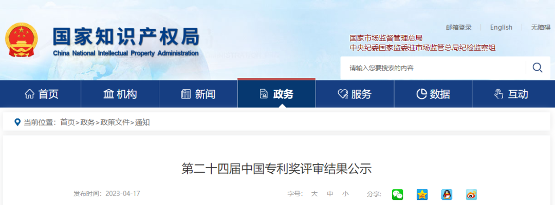 根据《中国专利奖评奖办法》《国家知识产权局关于评选第二十四届中国专利奖的通知》规定,第二十四届中国专利奖共评选出中国专利金奖预获奖项目30项,中国外观设计金奖预获奖项目10项,中国专利银奖预获奖项目60项,中国外观设计银奖预获奖项目15项,中国专利优秀奖预获奖项目782项,中国外观设计优秀奖预获奖项目45项。 附件:第二十四届中国专利奖预获奖项目.pdf 中国专利奖评审办公室 2023年4月17日 第二十四届中国专利 金奖预获奖项目 第二十四届中国专利 银奖预获奖项目 第二十四届中国专利 优秀奖预获奖项目 |
