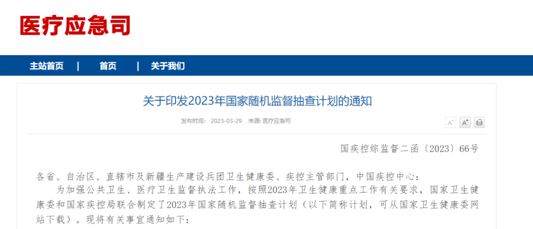 3月29日,国家卫健委发布《关于印发2023年国家随机监督抽查计划的通知》,公布了2023年国家随机监督抽查计划。其中指出将对于医疗机构(包括民营医疗机构)、采供血机构、母婴保健技术服务机构依法执业情况进行督察,并特别点名了要进一步加大对开展医学检验服务的医疗机构的抽查力度,依法依规严肃查处违法行为情况。 五项抽查计划中,《2023年医疗卫生国家随机监督抽查计划》和《2023年医疗卫生机构传染病防治国家随机监督抽查计划》都有涉及医学检验实验室的内容。 《通知》还提出了今年将重点检查新冠病毒感染疫情报告是否存在瞒报、缓报、谎报等情况,而这也与我们检验科的工作密切相关。除此以外,辅助生殖、健康体检等被点名的服务,都有我们检验科的直接参与,可见行业监管的力度是越来越大了。