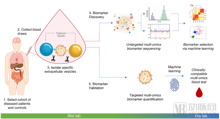 与传统的组织活检相比,液体活检凭借其无创性、敏感性、动态性等特质,在肿瘤早筛、早诊、治疗及预后环节都展示了巨大的潜力,在解决肿瘤全周期的诊疗难题上更是被寄予厚望。 液体活检是以血液等体液为标本进行取样和分析的体外诊断技术,通过检测肿瘤释放到血液中的循环肿瘤细胞(CTCs)、循环肿瘤DNA(ctDNA)、细胞外囊泡(EVs,主要指外泌体)和循环无细胞RNA(cfRNA)这四种主要标志物的数量,进行肿瘤筛查及辅助治疗。 外泌体是一种由活细胞分泌到细胞外环境的小囊泡,直径大小约为30~140nm,富含丰富的能反映亲本细胞的多组学“货物”(包括DNA、RNA、蛋白质、脂质和代谢物等)。在体内参与细胞通讯、细胞迁移、促血管新生和抗肿瘤免疫等生理过程,与多种疾病的发生和进程密切相关。外泌体的的各个组分即可以当成疾病诊断的标志物,又可以作为疾病治疗的特异性靶点。 今天我们要了解的海外Mursla公司就是这样一家液体活检领域里的后起之秀,其独特的通过实时分析血液中外泌体里特异性生物活性物质的技术,为癌症的诊断、治疗和预后提供了一种侵入性更小、反应更快的方法。 超灵敏、基于纳米电子学的新技术助力外泌体诊断临床化 外泌体应用于在疾病诊断中,可通过抽血取样的方式,方便地对其来源组织进行液体活检,具有极高的临床应用潜力。然而,由于缺乏对外泌体灵敏的制备技术和分析技术,在临床转化上仍有障碍。 在外泌体制备方面,Mursla开发了一种通过结合密度缓冲和尺寸排除色谱(SEC)从血浆中分离出外泌体的新方法,得到的外泌体中的脂蛋白颗粒污染最小。同时,可提取血液中不同的外泌体亚群。 在外泌体分析方面,Mursla合成了一个名叫ExoPheno™的技术平台工具,该平台通过机器学习集成了干、湿实验室分析,可以检测、分析血液中组织特异性外泌体的多组学“货物”,用于各种生物医学应用。 例如,该平台可用于癌症早期检测,能改进肿瘤的低阳性预测值 (PPV),具体为: 1)使用组织来源标记物捕获血液中的组织特异性外泌体 2)检测外泌体中包含的特定多组学疾病标志物(包括DNA、RNA、蛋白质、脂质和代谢物),与肿瘤细胞相对应 3)重点研究肿瘤活细胞在外泌体中释放的动态信息,在癌症早期筛查中更具敏感性