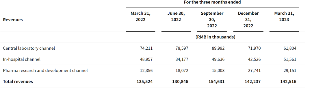 基因科技网讯:5月30日,燃石生物科技有限公司发布了2023年第一季度财报,截至2023年3月31日,燃石医学的收入为1.425亿元(约合2080万美元),较2022年同期的1.355亿元增长5.2%。 第一季度燃石中心实验室业务产生的收入为6180万元(900万美元),较2022年同期的人民币7420万元减少16.7%,主要由于1月份COVID-19大流行的检测数量下降。第一季度院内业务产生的收入为5160万元(约合750万美元),较2022年同期的4900万元增长5.3%,主要得益于销量的增长。第一季度医药研发服务产生的收入为2920万元(约合430万美元),较2022年同期的1240万元增长135.5%,主要归因于测试量的进一步增加以及现有和新客户的平均合同总价值增加。制药服务第一季度签订的新合同总值为人民币7500万元,较2022年同期增长27%。燃石2023 Q1的毛利为9880万元(约合1440万美元),较2022年同期的8760万元增长12.8%;毛利率为69.3%,2022年同期为64.6%。按渠道划分,中心实验室业务毛利率为77.8%,2022年同期为68.1%;住院业务毛利率为66.7%,2022年同期为68.2%;医药研发服务的毛利率为55.8%,2022年同期为29.2%。不计折旧和摊销费用的非GAAP准则毛利润为人民币1.079亿元(约合1570万美元),较2022年同期的9270万元增长16.4%;非GAAP毛利率为75.7%,而2022年同期为68.4%。2023 Q1的运营费用为2.872亿元(约合4180万美元),较2022年同期的3.504亿元减少18.0%。减少的主要原因是预算控制和裁员。研发费用为9440万元(1370万美元),较2022年同期的1.195亿元减少21.0%,主要由于研发人员成本下降及特许权使用费及许可费减少。销售及市场推广开支为6480万元(940万美元),较2022年同期的8920万元减少27.4%。一般行政开支为人民币1.28亿元(1860万美元),较2022年同期的1.417亿元减少9.7%。截至2023年3月31日,净亏损为1.853亿元(2700万美元),2022年同期为2.614亿元。截至2023年3月31日,现金、现金等价物、限制性现金和短期投资为8.031亿元(约合1.169亿美元)。