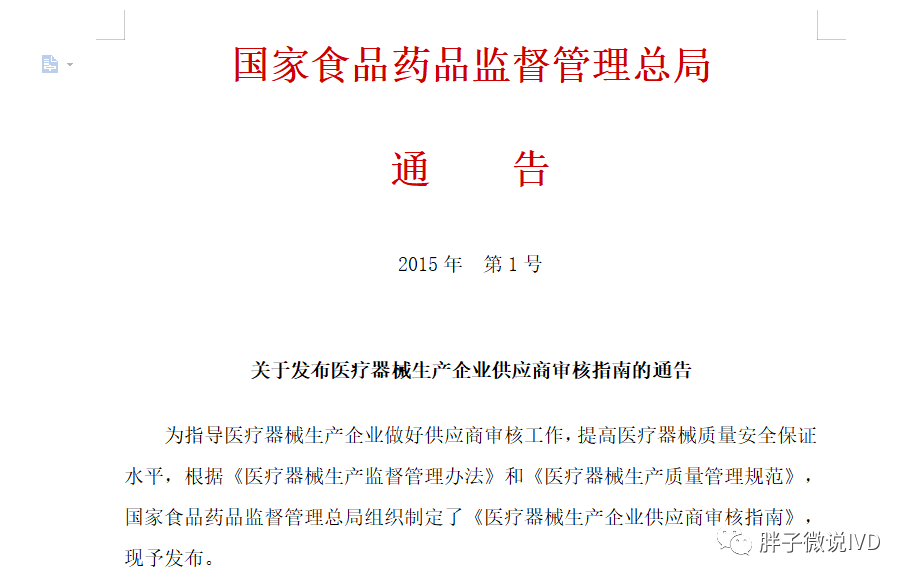 评价指南里明确写到:  指南里只写了这类物资,其实从不正式渠道知悉,国家监管机构对以下物资或者服务提供方也有意加强进行延伸考察,如灭菌、制水和委托检验的供应商。以前这块的工作就是在法规里列示,但是没有像药品行业执行那么严格,但是也对一些大型的企业做了调研,现在延申检查真的要来了。 首先有的地方的网友会说:“你北京发征求意见,关我外地什么事?”好,我问你,一个大的供应商X,供应北京AB两个客户同时供应外地CD......几百个客户。某天北京客户的延申检查发现企业X存在重大风险,产品有重大缺陷,要求X停产,那我问你外地企业能独善其身么? 第二点,北京局听取意见,是不是离正式实施还有一段时间。我觉得不会太长,或者说国家局早有准备。早在2015年我去南方某原料公司考察期间,对方就刚刚送走药监局系统领导,进行地原料企业考察调研。也就是说,国家为推行这个政策,至少将这件事提前准备了七八年。因此,我认为这个意见会很快实施。第三点:对行业有什么影响。我只能说,影响大了去了。别的行业我不敢说,IVD行业原辅料市场如果都被延伸检查,行业整体的危机感就上来了。因为很多IVD企业尤其是原料企业,很多都是只有一两间实验室,整体实验条件非常简陋。另外,很多原辅料企业一直认为其本身不属于医疗器械行业,因此没有严格按照正规的流程进行管理,因此就是在流程上还是有很多不足的,比如生产流程质检流程等。第三,人员问题。最简单的生产和质检人员分开有些企业都是没有做到的,都是一个人从头做到尾。至于危险品管理等,很多企业都不是很正规。总之,很多方面很多供应商不是这里就是那里没有做到位。以上如何改进呢?可能就需要正规的实验室硬件及其管理;需要生产过程和检验过程的捋顺及记录;需要管理系统的完善;需要人员的配置等。那么就会增加有些企业的成本,尤其是小企业,解决的办法是什么呢?1、改扩建实验室,真金白银投入,但是很多企业真的没这份实力啊;2、挂靠实验室或者在平台进行运作,包括硬件甚至是人员;全国那么多家医疗器械企业,要是都实行延伸检查,北京为例:大约有1200家生产企业,除去一类产品企业和外企,二三类产品生产企业就按照800家计算,每家有20个核心供应商计算,那么需要延伸检查的企业就要有16000家。按照现在药监部门的人员配置,恐怕很难完成任务。那就需要招聘新的工作人员,还有一条就是选择重点企业进行检查。那么,哪些企业可能是检查重点呢?很多家IVD生产企业共有的大的业界供应商,比如国内的菲鹏、诺唯赞等,是很多家医疗器械企业的供应商,说点实在的,我检查一次好多家都完成了任务,我为什么不查?这是一类监督面广的供应商。 法规、指南、各种培训都已经点名的行业或者厂家:动物源性产品、制水系统提供及服务商(在制水系统评价指南里,明确指出这类供应商属于合格供应商范畴管理。)、灭菌服务、及委托检验的厂家,都可能是下一步检查的重点。我分析,这几条受重视程度比较低,但是国家局在检查过程中发现其实情况也不容乐观,因此干脆加强监管。 第三种:有因检查。顾名思义,就是出了问题之后的检查。这类检查可能不管你企业大小,不管涉及到什么问题,只要到现场,肯定按照最严的标准执行。 第四种,迅速崛起,单品占比较大的产品。可能检查老师想从典型抓起,因此对这类产品检查比较关注哦。 啰里啰唆,这就是我看到这个征求意见稿时候的想法。延伸检查肯定对医疗器械上游企业要求更严格了。但是最基本的几点生产企业应该记住:生产质检人员配置一定到位,试验记录一定妥善保存;该在洁净区做的产品一定在洁净区做,不要在所谓假的洁净区做。妥善处理好危险品采购、库房、研发、生产部门的合规工作......总之,这件事对于医疗器械行业都是一种冲击,希望借此提高医疗器械行业上游的水平吧!参考链接:市药监局发布《北京市医疗器械注册质量管理体系核查延伸检查指导原则(试行)》 (beijing.gov.cn)