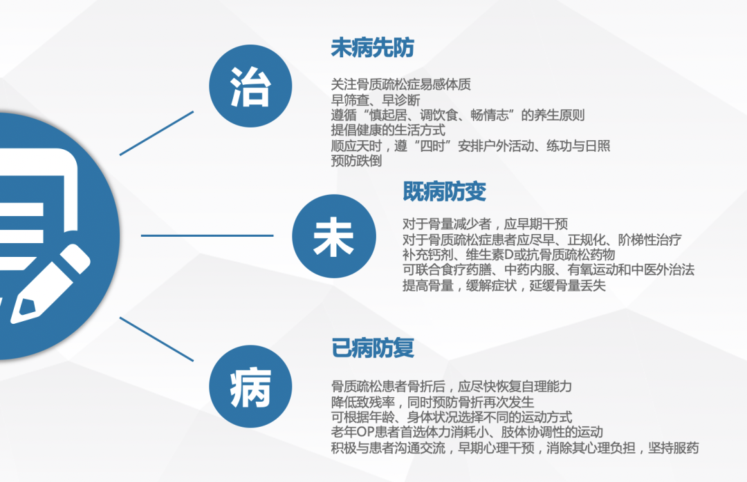 骨质疏松症可防、可治。目前我国骨质疏松症诊疗率在地区间、城乡间还存在显著差异,整体诊治率均较低。即使患者发生了脆性骨折(椎体骨折和髋部骨折), 骨质疏松症的诊断率仅为2/3左右,接受有效抗骨质疏松药物治疗者尚不足1/4。鉴于我国目前骨质疏松症诊治率过低的严峻现实,建议在医疗卫生工作中重视骨质疏松症及其骨折的防治,注意识别高危人群,给予及时诊断和合理治疗。
