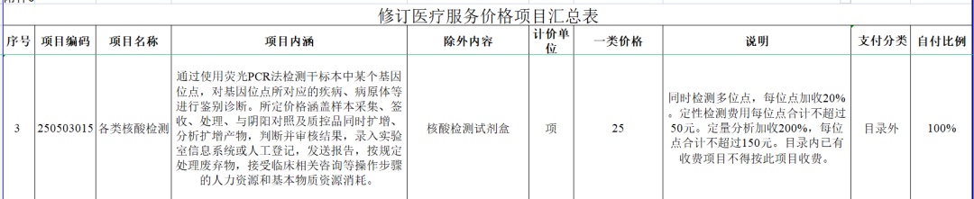 刚刚,湖南省医保局发布了《关于新增试行及规范调整部分医疗服务价格项目的通知》湘医保发〔2023〕25号,正式将项目编码250503015的 各类核酸检测 实行技耗分离收费,除试剂盒外,一类收费25元,同时检测多位点,每位点加收20%。定性检测费用每位点合计不超过50元。定量分析加收200%,每位点合计不超过150元。目录内已有收费项目不得按此项目收费。