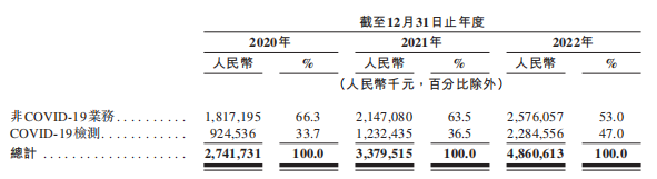 显然,艾迪康这期间主要收入来自以核酸检测为主检验业务,招股书显示检测量从2020年的6010万次增至2022年的1.65亿,复合年增长率为65.6%。但新冠业务的阶段性繁荣,这也为上市后阶段的业绩经营埋下疑虑。