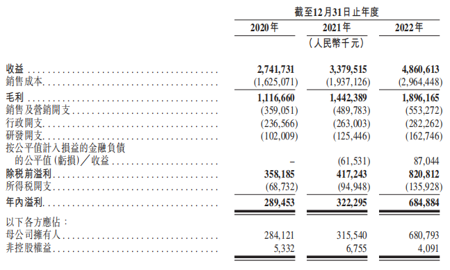 2019年、2020年、2021年、2022年营收分别达到17.29亿、27.42亿元、33.8亿元、48.61亿元,疫情前后复合年增长率为41.1%;净利润分别为0.7亿元、2.89亿元、3.22亿元和6.85亿元,疫情前后复合年增长率为114%三年间总收入破百亿,净利润6.81亿。