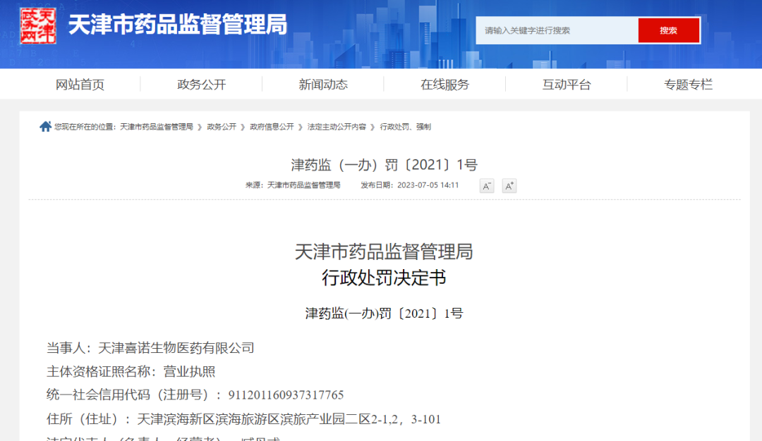 近日,天津市药品监督管理局对天津喜诺生物医药有限公司出具行政处罚决定书。针对2021年2月1日,接举报件,反映该企业所生产的“曲霉菌半乳甘露聚糖检测试剂盒”与药监部门批准的产品不一致,作出行政处罚决定。 处罚明细如下: (一)“生产、经营未取得医疗器械注册证的第二类、第三类医疗器械的”的规定,现责令当事人改正上述违法行为,并决定处罚如下: 1.没收违法所得1400元, 2.处货值金额10倍罚款768000元。 (二)“未按照经注册或者备案的产品技术要求组织生产,或者未依照本条例规定建立质量管理体系并保持有效运行,影响产品安全、有效”的规定,现责令当事人改正上述违法行为,并决定处罚如下: 1.没收违法所得314038元, 2.没收曲霉菌半乳甘露聚糖检测试剂盒(ELISA法)(包装规格:12人份/盒)337盒 3.处货值金额5倍罚款1699690元。 合计处罚金额270多万元。详见:一IVD企业,被罚270万元! 官网显示,天津喜诺生物医药有限公司成立于2014年,是天津一瑞生物科技股份有限公司子公司之一。一瑞生物集团旗下共设有8家全资子公司,分别是旗下设有北京金山川、天津喜诺生物、北海市兴龙生物制品、一瑞(上海)、上海川瑞、一瑞(广州)、一瑞(苏州)医药和一瑞生物(加拿大)。 今日,一瑞生物通过行业媒体发布致歉声明,不过在公司官网和官网微信上,并未看到此声明发布。 IVD体外诊断网综合自:天津药监局、一瑞官网、行业自媒体 |