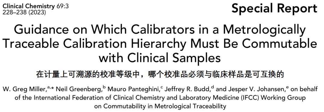 使用不同终端用户的体外诊断设施(IVD-MD)检测临床样品中相同被测量具有等同结果,是为诊断、治疗、监视、或风险评估是必须的。ISO 17511:2020规定了如何建立计量溯源性到较高等级可用的参考系统成分,使得在IVD-MD间有等同的结果。与临床样品(CS)互换性是参考物质在校准等级中作为一个校准品的必须特性。但是,在校准等级中不是所有校准品被要求是可互换的;不同校准等级对哪个校准品必须与CS具有可互换具有不同的要求。因为互换性的评估是一个艰巨的努力,所以,重要的是,在实施某个校准等级时,确定哪些校准品需要可互换的。我们提供了一个指导,在纠正任何不可互换的偏移是适当下,哪些校准品必须与CS是可互换的;以及在ISO 17511:2020中,叙述的各个类型校准等级中,没有要求校准品与CS的互换性。