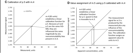 ISO 17511:2020在多个地方提示了RM互换性和校准品可应用在给定校准等级处的重要性。但是,没有提供明确的指导,在一个等级内的特定校准品,必须与CS是可互换的,或互换性不是必须的。一个校准品未被检出的不可互换性,会引起某个MP具有偏移。因为评估互换性是一个很艰巨的努力,很重要的是确定,在实施IVD-MD的校准等级中,哪个校准品需要与CS是可互换的。