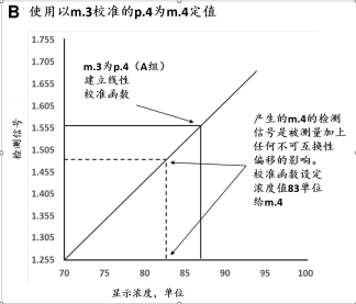 在合适相应下,某个RM的互换性可以按照文献的技术叙述予以评估(5-7)。一个溶液的基质包括所有除了分析物外的所有分子和离子。在校准物质的基质,与CS的基质有足够差异下,将偏移引入某个MP的校准等级,引起了不可互换性。在相应环境下,不可互换性的偏移可以在添加某个纠正步骤到校准等级中去除(8)