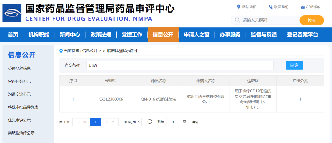启函生物运用多位点基因编辑技术修改人源多能诱导干细胞(iPSC),并将其分化成为靶向CD19阳性B细胞肿瘤的自然杀伤细胞(NK)产品QN-019a,其临床适应症为CD19阳性的复发难治性侵袭性B细胞非霍奇金淋巴瘤。据国家药监局药品审评中心官网显示,2023年7月18日,QN-019a细胞注射液的临床试验申请已获得默示许可。