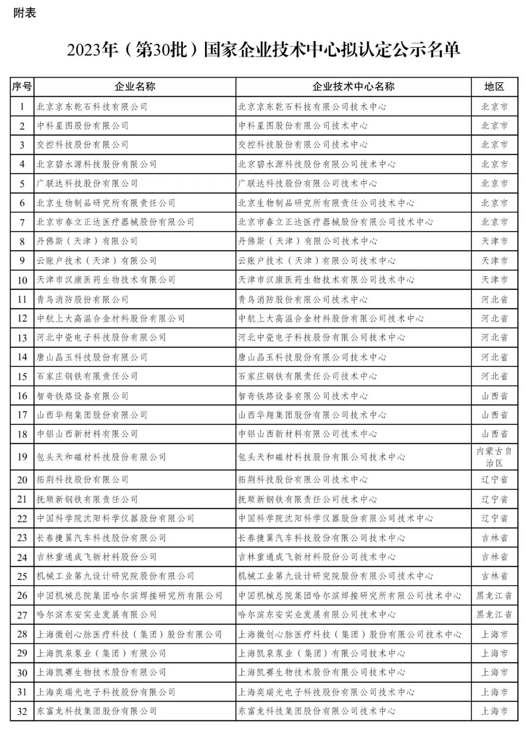 近日,国家发改委根据《国家企业技术中心认定管理办法》(国家发展改革委、科技部、财政部、海关总署、税务总局2016年第34号令)和《国家发展改革委办公厅关于组织开展2023年(第30批)国家企业技术中心认定及国家企业技术中心评价工作的通知》(发改办高技〔2023〕207号),在地方主管部门审核和推荐的基础上,国家发展改革委创新和高技术发展司组织了2023年(第30批)国家企业技术中心的认定复核工作,拟认定企业技术中心名单,予以公示。 且在公示结束期,未收到公示企业技术中心的相关意见,现将名单公布如下: |