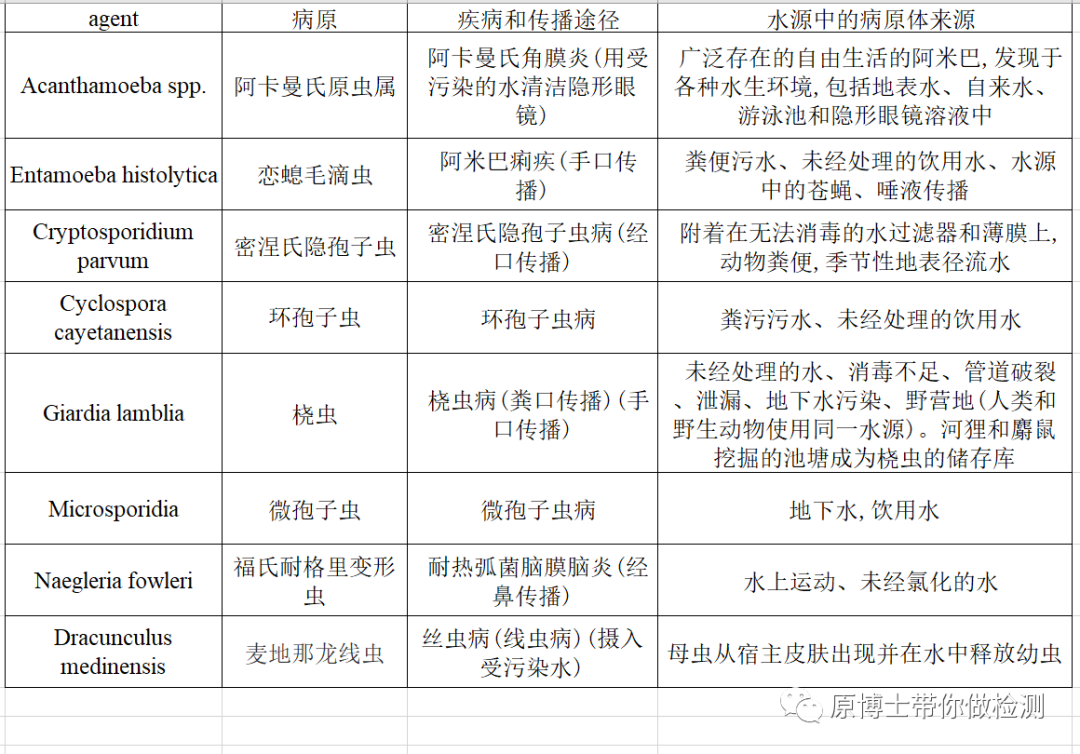 当“杜苏芮”在福建登陆时,我还怀着轻松的心情在网上看各种段子,觉得它离我太遥远。 几天后北京大雨,发布暴雨红色预警,我仍然没太在意,当车行驶在越来越深的积水中,开车犹如行船时,我感到恐惧了。 当越来越多房山、门头沟、涿州的洪水视频不断出现时,我越来越感到不安也为自己的傲慢和无知而自责。 接下来我一直思考我如何能为水灾中或水灾后的群众贡献一点点自己的力量,于是写了这篇文章。 一、水传播疾病(Waterborne diseases) 水传播疾病(Waterborne diseases)是指由水传播的病原微生物引起的疾病。这些疾病可在洗澡、洗涤、饮水或食用接触污染水的食物时传播。以往人们主要关注的病原都是通过空气传播(如流感病毒、新冠病毒)、接触传播(如猴痘病毒)、垂直传播(HIV)的病原,对于水传播疾病大部分是通过污染的水经黏膜或消化道感染,经粪-口途径传播的病原需要重点关注。 1.主要水传播寄生虫 2.主要水传播细菌 3.主要水传播病毒 4.主要水传播动物病原 对于动物的水传播病原的资料不是很多,我查阅资料整理了一部分又按照我自己的理解添加了一部分,可能有错误。大家如果有比较系统的资料可以分享给我,希望对需要的人能有所帮助。 二、洪水后预防人间传染病的措施: