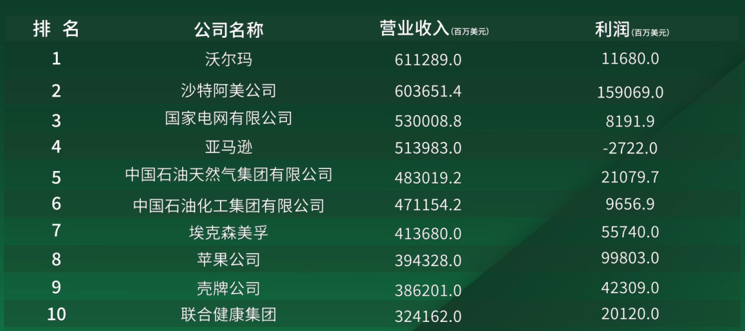 2023年8月2日,《财富》杂志发布2023 年 财富世界 500 强榜单,这是按营业收入的年度世界企业排名。今年入榜企业营业收入综合约为41万亿美元。500强的门槛从去年的286亿美元提高到309亿美元。由于全球经济不景气,所有上市公司的净利润总和下降了 6.5%,约为2.9万亿美元。 上榜的有IVD相关业务的企业: 排名前10的企业: 纵观榜单前十强企业,美国和中国两国企业占据绝大多数席位。沃尔玛、亚马逊、埃克森美孚、苹果公司、联合健康集团等五家美国企业;国家电网有限公司、中国石油天然气集团有限公司、中国石油化工集团有限公司等三家中国企业。剩余两席,则被沙特阿美和英国的企业分别占领。 中国企业,加上台湾地区企业,今年中国共有142家公司上榜,大公司数量继续位居各国之首。 |