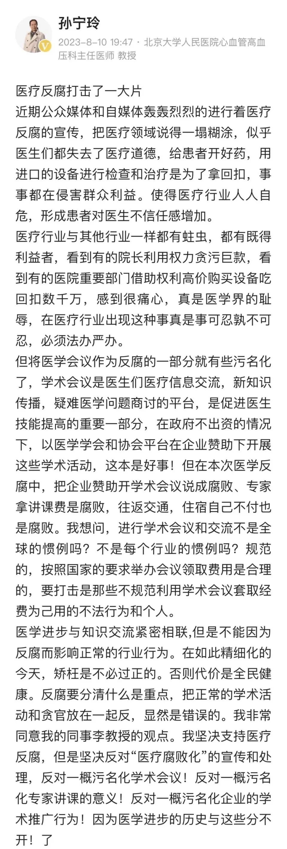 国家卫生健康委会同教育部、公安部、审计署、国务院国资委、市场监管总局、国家医保局、国家中医药局、国家疾控局、国家药监局,联合召开视频会议,部署开展为期1年的全国医药领域腐败问题集中整治工作。 7月28日,中央纪委国家监委召开动员会,部署纪检监察机关配合开展全国医药领域腐败问题集中整治,会议指出,集中整治医药领域腐败问题是推动健康中国战略实施、净化医药行业生态、维护群众切身利益的必然要求。要以监督的外部推力激发履行主体责任的内生动力,深入开展医药行业全领域、全链条、全覆盖的系统治理。加大执纪执法力度,紧盯领导干部和关键岗位人员,坚持受贿行贿一起查,集中力量查处一批医药领域腐败案件,形成声势震慑。 另外,最近,国家医保局、财政部、国家卫生健康委、国家中医药局联合印发了《2023年医疗保障基金飞行检查工作方案》,将在全国各大医疗机构组织开展2023年医保基金飞行检查。除上述整治工作外,今年下半年医保飞检工作也将同步开展。 根据《2023年医疗保障基金飞行检查工作方案》,计划在2023年8月—2023年12月期间实现对全国31个省(自治区、直辖市)和新疆生产建设兵团全覆盖检查。 此次飞行检查采取“省份交叉互检”模式,通过抽签方式确定参检和被检省份。飞行检查实行组长负责制,原则上每组检查人数控制在60人以内,检查时间控制在10天以内,视情况可延长检查天数。计划在2023年8月至12月期间实现对全国31个省份和新疆生产建设兵团全覆盖检查。 其中医学影像检查、临床检验、康复三个领域作为检查重点。检查范围为2021年1月1日—2022年12月31日期问医保基金使用和管理情況,必要时可追溯检查以前年度或延伸检查至2023年度。 先从各省范围内选择医保基金用量较大的地级市作为被检城市,再从被检城市医保基金支付排名靠前的定点医药机构中现场抽取2家医院和1家药店,连同当地市级医保经办机构共同作为被检单位。同时,《方案》强调,检查组可根据举报线索或智能监控疑点提示等直接确定被检单位。 针对定点医疗机构的飞行检查主要包括医保内控管理情况,财务管理情况,药品、耗材集中带量采购执行情况等; 针对定点零售药店的检查,包括将医保基金不予支付的药品或其他商品串换成医保药品,空刷、盗刷医保凭证,伪造、变造医保药品“进、销、存”票据和账目等; 针对医保经办机构的检查,包括与医疗机构费用审核和结算支付情况,对门诊慢特病待遇认定、定点医疗机构准入、第三方责任医保基金不予支付、异地就医结算费用等审核情况。 事实上,目前地方纪委也相继进院调研、开展整治工作。 7月以来,中央纪委国家监委网站发布《重庆璧山:系统纠治医疗领域顽疾》《 天津持续纠治医疗领域不正之风和腐败问题 推动解决群众就医难》《湖南:深入推进清廉单元建设 让廉洁理念覆盖各行业各领域》《天津红桥:深化医疗卫生领域专项监督》等多篇文章,介绍医疗领域整治工作进展。 此外,今年4月召开的2023年全国卫生健康系统法治、基层、应急和食品安全工作电视电话会议也宣布,要启动2023~2026年度大型医院巡查工作,分期分批开展医院巡查工作。 各地卫健委近期纷纷公布对于腐败线索的举报方式。上海还出台了对于举报的奖励办法,奖励金额最高达100万。 近期,医疗领域反腐持续升温,一些地区开始清退讲课费、不少学术会议也宣布暂停。但8月10日晚间,孙宁玲在社交平台上表示,坚决支持医疗反腐,但是反对一概而论污名化学术会议、专家讲课以及企业学术推广的行为,“因为医学进步的历史与这些分不开。” 孙宁玲写道,近期公众媒体和自媒体轰轰烈烈地进行着医疗反腐的宣传,把医疗领域说得一塌糊涂,似乎医生们都失去了医疗道德、给患者开好药、用进口设备进行检查和治疗都是为了拿回扣,事事都在侵害群众利益。使得医疗行业人人自危,形成患者对医生不信任感增加。 孙宁玲在文章中表示,“在政府不出资的情况下,以医学学会和协会平台,在企业赞助下开展这些学术活动,这本是好事!但在本次医学反腐中,把企业赞助开学术会议说成腐败、专家拿讲课费是腐败,往返交通、住宿自己不付也是腐败。我想问,进行学术会议和交流不是全球的惯例吗?不是每个行业的惯例吗?规范的,按照国家的要求举办会议领取费用是合理的,要打击的,是那些不规范利用学术会议套取经费为己用的不法行为和个人。医学进步与知识交流紧密相联,但是不能因为反腐而影响正常的行业行为。” |
