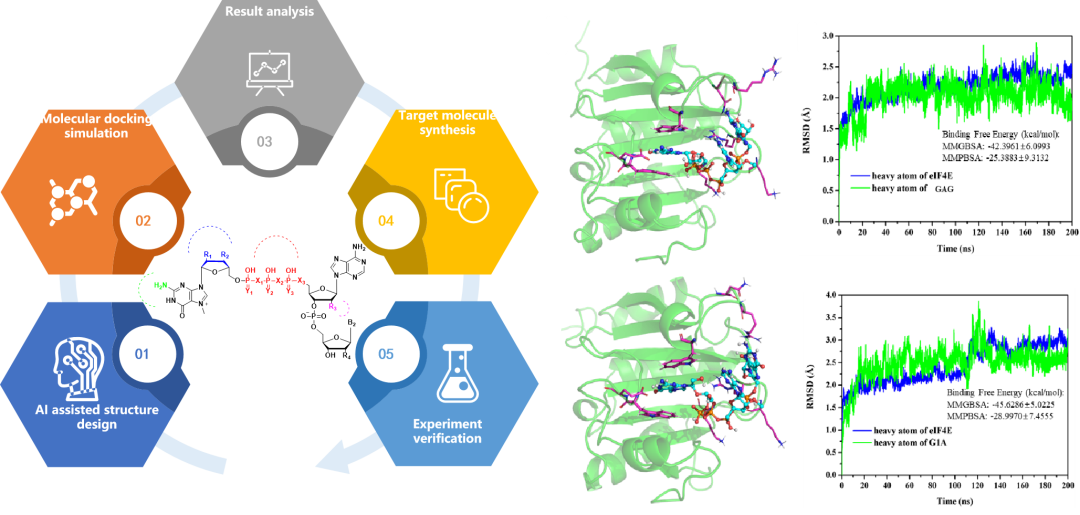 通过AI分子动力学分析,申基生物筛选了一大批在五元糖环上不同结构修饰的帽类似物,发现了一批和eIF4E结合能力特别好的帽类似物,且经过一年多国内外几十家客户验证,证实新型帽类似物结构在产量、加帽率、完整性、蛋白表达、生物相容性与传统帽类似物无显著差异,且部分结构生物活性更优!新型帽类似物可从源头上彻底规避传统帽类似物专利带来的影响,目前已有客户应用申报IND!