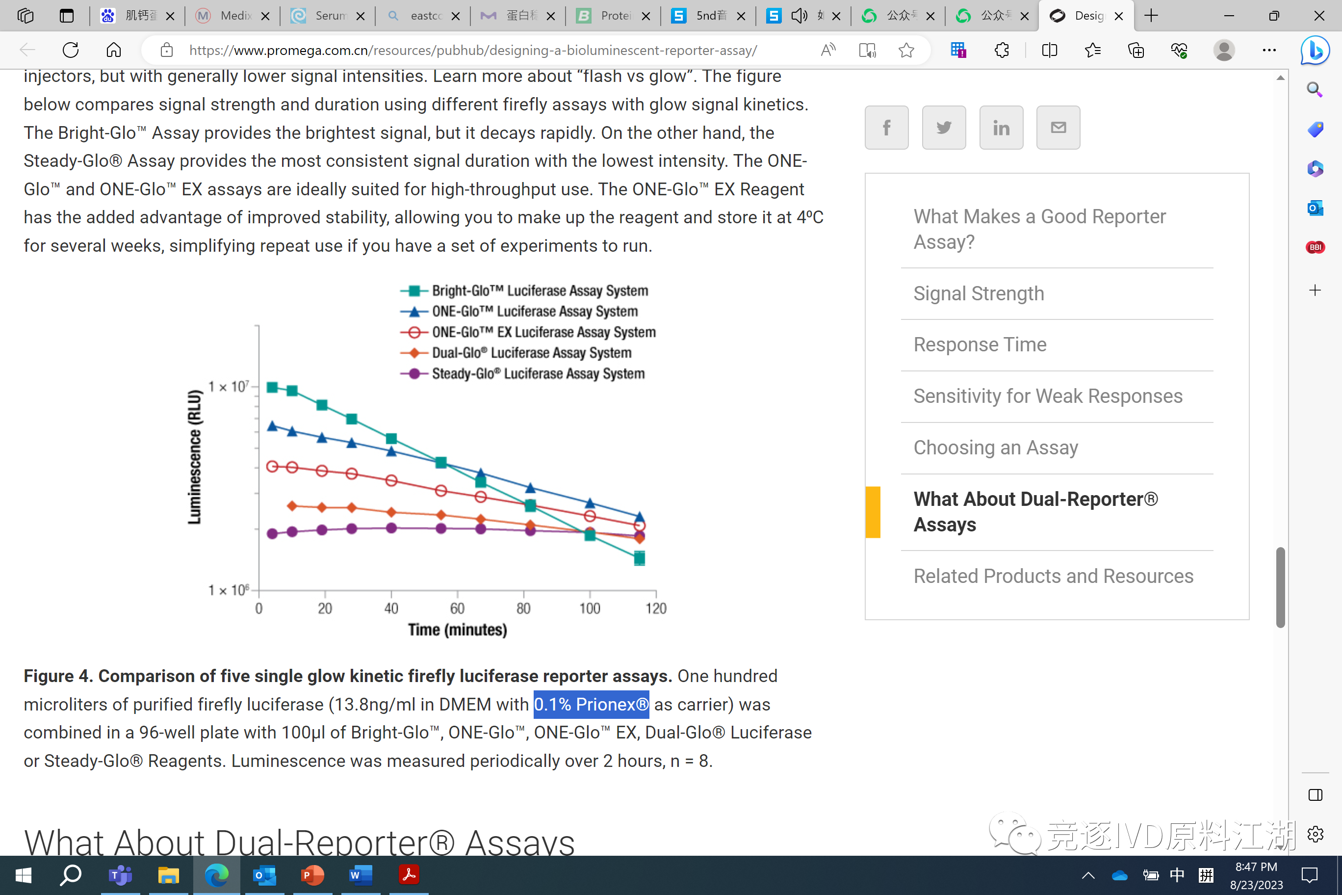 虽然我是技术白痴,但通过与诸多客户的交流以及在各位师友的熏陶之下,深深感到稳定性是体外诊断试剂极关重要的性能指标,对于某些项目来讲,一款合适的蛋白稳定剂往往能起到立竿见影的效果,使得试剂或者校准质控品的稳定性问题迎刃而解。此文对IVD常见的进口品牌蛋白稳定剂作一汇总。限于水平,必然有所遗漏,望诸君海涵。以下品牌按首字母排序。 (1) BioVision Incorporated (2) CANDOR Bioscience 提供针对抗体和酶偶联物等不同型号的稳定剂。 (3) DSM Pentapharm 提供一款高纯度水解胶原蛋白溶液Prionex® 10%,具有卓越的蛋白稳定效果。有报道表明其可有效改善Troponin I-C(42.3kDa)和BNP分子的稳定性,体现在大幅提高两者在稳定性试验中的回收率(Brian R. Fernandez et al., 2021)。BNP很容易被活性蛋白酶降解,而Prionex® 10%经过无菌处理,可以消除潜在的水解酶的影响。 此外,由于Prionex® 10%无核酸残留,被国外分子诊断公司广泛且大量使用。(下图摘自Promega官网: Designing a Bioluminescent Reporter Assay: Choosing Your Experimental Reporter (promega.com.cn)) 目前,Prionex®还可提供冻干粉型号,以满足不同用户需求及偏好。 (4) EastCoastBio 特有的Fish Plasma产品,包括Seablock、Aquablock等系列。顾名思义,它们的主要用途在于封闭。但根据其产品介绍,因为鱼的体温是在室温及以下,Seablock很适合在低温及冷冻条件下用作蛋白稳定剂。 (5) JSR Life Sciences BlockmasterTM PA1080,兼具封闭及蛋白稳定作用。 (6) Surmodics IVD, Inc. 提供多款针对抗原、抗体及酶偶联物的稳定剂产品,号称蛋白稳定剂的金标准(Gold Standard)。 |