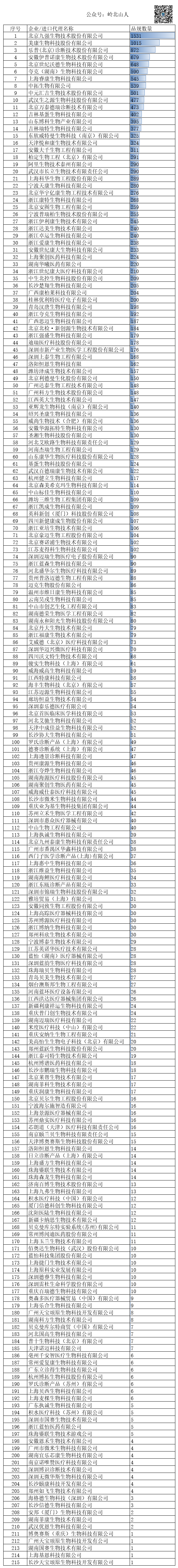 为做好肾功和心肌酶生化类检测试剂集中带量采购工作,现将企业填报的肾功和心肌酶生化类检测试剂予以公示,有关事项通知如下:企业自主填报的肾功和心肌酶生化类检测试剂,包括品种名称、注册证编号、产品名称、包装规格、适用机型、是否属于生化试剂等(详见附件)。1.本次集采为单品种液体生化诊断试剂,不包括品种大于或等于2种的联合诊断试剂、干性试剂、试纸条和按药品管理的诊断试剂。在采购范围内的肾功和心肌酶生化类检测试剂,将作为下一步医疗机构填报历史采购数据和需求采购量的基础数据。2.请有关生产企业认真核对公示内容,不在附件内但是属于本次集采范围的产品,可按照2023年8月18日《关于开展肾功和心肌酶生化类检测试剂信息填报工作的通知》要求,网上补充填报产品信息。3.在附件内但是不属于肾功和心肌酶生化类检测试剂的产品,或公示内容有错误的产品,请企业登录药品和医用耗材招采管理子系统,进入“耗材交易结算—业务办理管理—业务办理查询”界面,新增业务类型“耗材—肾功和心肌酶生化试剂公示”,提交加盖企业公章的材料,说明需要修改完善的信息。4.包装计量单位影响医疗机构报量和投标竞价分组,需要修改的请于本次公示期间提出变更申请,逾期原则上不予受理。通过数据分析,此次有215个厂家参与信息填报,和2022年肝功集采填报厂家216家基本持平。品规合计24496个,其中北京九强、美康生物两家的填报数量超过1000个。 在项目上,CK-MB,CYSC、HCY、CR等11个项目的品规数量超过1000个。