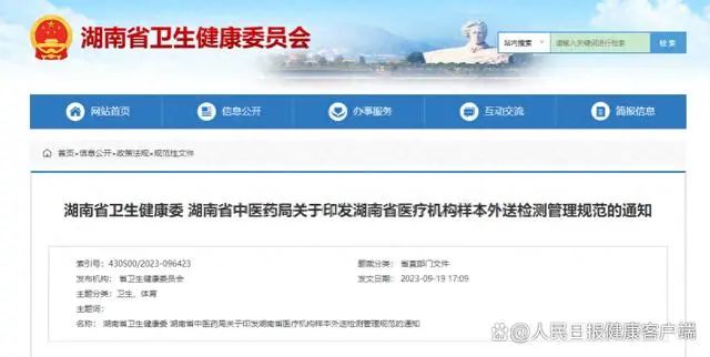 9月19日,湖南省卫生健康委、湖南省中医药局发布《关于印发湖南省医疗机构样本外送检测管理规范的通知》,其中提到—— “严禁医疗机构将本院能够并适合开展的临床检验项目外送至第三方检测机构进行检测。特殊情况需短期外送的,须向当地卫生健康行政部门进行备案登记”。