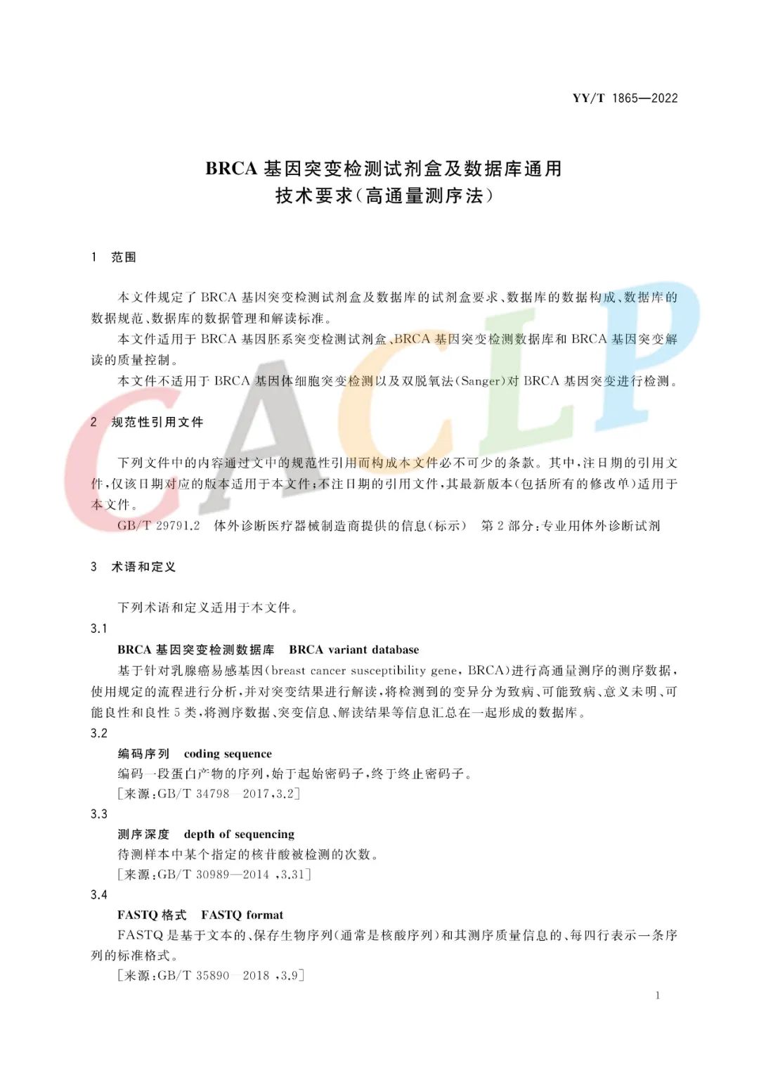 2022年10月17日,国家药监局发布了《BRCA基因突变检测试剂盒及数据库通用技术要求(高通量测序法)》行业标准YY/T 1865—2022,该标准于2023年10月1日正式实施!