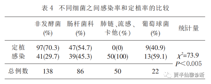 有文献报道对于常见的下呼吸道细菌进行培养,以患者具有感染症状及根据药敏结果用药是否有效进行将细菌区分为定植菌或致病菌,结果如下图所示