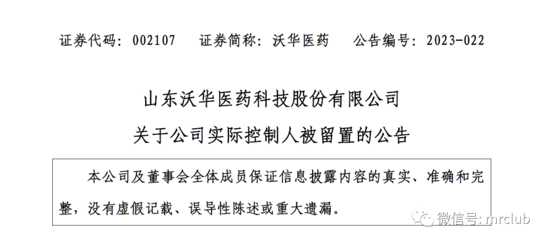 又一知名医企董事长被采取留置措施,配合调查,原因尚未公布。 11月6日,沃华医药于深交所发布《关于公司实际控制人被留置的公告》,公告显示,沃华医药近期获悉,公司董事长、实际控制人赵丙贤被采取留置措施,配合监委机关协助调查。但所涉事项与公司无关,截至本公告出具日,公司未收到相关机关的通知,也未接受过任何协助调查。 沃华医药表示,截至本公告披露日,公司尚未知悉留置调查的进展及结论,同时会密切关注上述事项的最新进展情况,并依法披露。 公开资料显示,赵丙贤生于1963年11月,毕业于上海交通大学,硕士学位。除拥有沃华医药控制权外,赵丙贤在资本市场长袖善舞,拥有超三十年投资,并购,重组上市及企业经营管理经验,因曾助力多家公司成功上市,其被华尔街日报记者称为“中国的巴菲特”。赵丙贤还曾撰写《资本运营论》、《有效动作论》,分别于1997年、2006年出版,前者为国内第一部系统论述资本运营和投资银行的专著,后者则独创了一套理念治企的经营管理模式。 图源:沃华医药官网 |