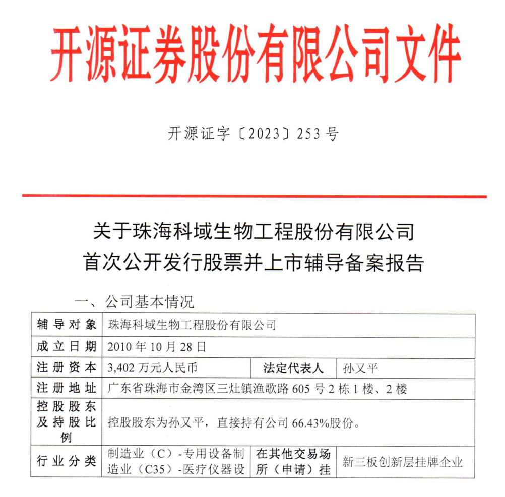 2023年11月14日,证监会官网披露,珠海科域生物工程股份有限公司上市辅导备案,辅导机构为开源证券,派出机构为广东证监局。 图片来源:证监会官网 官网信息显示,科域生物成立于2011年,是一家专业从事诊断产品和自动化设备研发、制造和营销的体外诊断高科技企业。 科域生物总部位于中国的粤港澳大湾区核心,全球经销合作伙伴2000余家,服务医院用户3000余家,其中有470多家三甲医院,100多个15189实验室。 科域生物的主营产品为全自动粪便分析仪、尿液分析仪、白带分析仪及相关配套耗材。公司拥有七十余项专利、人工智能自主技术平台,已通过ISO 13485质量管理体系认证、两化融合管理体系评定,多项产品通过CE认证、RoHS认证。所有产品均有自主开发产权。 |